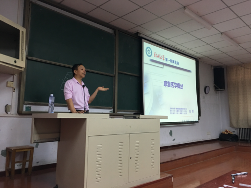 2017年9月8日下午,郑州大学第一附属医院康复医学科主任曾西教授受临床医学系邀请,在东校区201教室向2013级临床医学五年制和七年制的百余名同学开展康复医学概述及就业前景的宣讲,临床医学系副主任李同领老师出席本次会议。