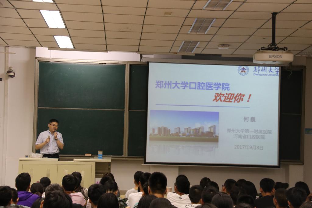 9月8日晚,口腔医学院于北核心教学楼2102举办了“爱校日”主题教育活动,活动主讲人为河南省口腔医院副院长何巍老师。何院长讲到,“德不近佛者不可以为医,才不近仙者不可以为医”,他表示医者不仅要有才,更应有德,我们应该像对待自己的家人一样看待我们的病人!在此次活动中,大家接受了“医者仁心”的思想教育,认识到医学生不仅要有扎实的学科基础,还要有一颗仁爱之心,相信在之后的大学生活中同学们会更加注重自身道德的培养。