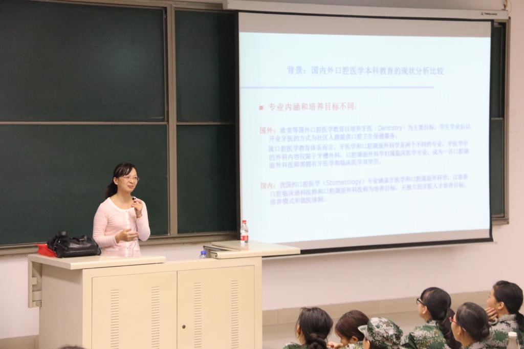 9月7日晚,口腔医学院副院长朱保玉老师在北核心教学楼2104进行了“爱知日”主题教育讲座。朱院长为同学们讲述了口腔医学院的现状,使同学们了解到口腔医学院是一个集医疗、教学、科研、学术交流与合作于一体的院系。