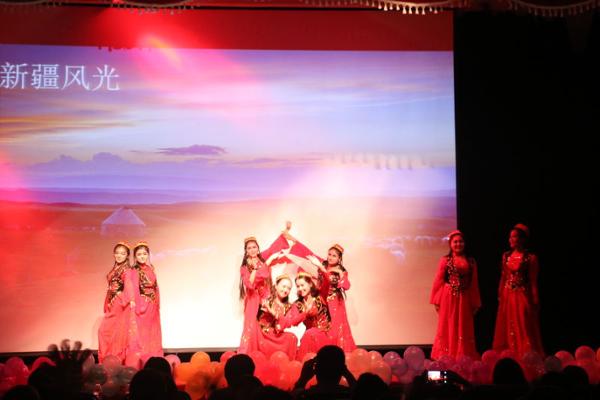 座无虚席,气氛高涨。随着音乐的响起,文艺晚会缓缓拉开了序幕。首先,温暖窝心的暖场小视频将大家的心紧紧牵在了一起,热情似火的开场舞迅速点燃了现场气氛。欢呼声一浪高过一浪,气氛热烈,掌声雷动。而后,热情欢乐的乐队表演、幽默诙谐的相声演出、刘朝老师的真情独唱、梦想话剧社的《新唐伯虎点秋香》,则一次又一次将演出推向高潮。其中,来自新疆的维族姑娘们以特色鲜明的民族舞蹈、火红的舞裙为大家带来了一场视听盛宴。歌以咏言,舞以尽意,赢得了大家的阵阵掌声。艺术团成员带来的啦啦操表演和歌曲串烧更是成为晚会的又一亮点。观众互动微博抽奖环节则更是牵动着同学们的心,呆萌的吉祥物米果为大家送上小礼品,让现场流动着暖暖的情意。最后,伴随着温馨的结束曲,晚会在大家的合影留念中圆满结束。