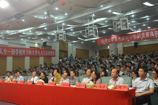 5月19日,由国学视野下的当代大学生人文素质教育项目组和历史学院、嵩阳书院共同举办的郑州大学第六届国学知识竞赛决赛在图书馆举行。来自历史学院、文学院的领导老师和项目成员,以及来自全校不同院系的近四百名学生出席活动。 本届国学知识竞赛以“弘扬中原历史文化,建设美丽郑大校园”为主题,以弘扬国学精粹、呼唤人文精神为主旨,紧扣中原历史文化主题,发掘中原传统文化中表现我国民族优秀品格和民族凝聚力的精华,把传统文化中的道德观念、道德规范与当代大学生的培养要求融合,陶冶学生情操,提升学生人文素养,完善慎独、尚德、自觉、勤勉的高尚人格,以期打造具有中原历史文化特色的郑州大学校园文化,为我校“双一流”建设贡献力量。 此次竞赛共吸引来自全校30个院系的近500名学生报名参赛。经过海选、初赛两轮角逐,共有六组十八位选手脱颖而出。决赛中必答题、选答题、抢答题、线索题和风险题五个答题环节,与精彩频出的中场节目相得益彰,整场比赛气氛紧张不失活泼,认真不乏诙谐。题目涉及内容范围广、层次深、难度均衡、贴近生活,选手们在比赛中充分展示了良好的国学功底和人文素养,获得了评委老师的深切赞许。最终,由历史学院王思阳、栗志鹏和新闻与传播学院刘慧组成的第四队勇夺桂冠。在颁奖仪式上,嘉宾分别为获得一、二、三等奖的选手颁奖。 习总书记针对传统文化的“四个讲清楚”和在致第二十二届国际历史科学大会的贺信中再三强调了传统文化与历史的重要性。为响应“文化强省”战略,为中原经济区建设提供智力和人才支持,国学视野下的当代大学生人文素质教育项目组推出多种举措,弘扬国学,加强大学生人文素质教育:举办多次中原历史文化系列座谈会,并邀请刘庆柱等著名学者参与研究讨论,举办春、秋两季的游学实践活动。以期培养积极、文明、尚学、为善的校园文明,建设具有中原历史文化的特色郑州大学校园文化。