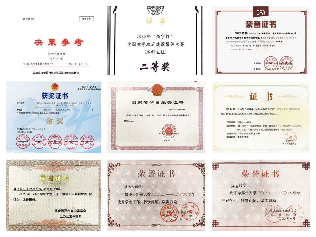 于是她开始将目光从课本移向更广阔的天地。为了检验所学,她主动投身于科研竞赛,和团队成员们共同熬过无数个夜晚,反复打磨方案。在“翔宇杯”中国数字政府建设案例大赛中,她与队友们将任务分解、协调推进,最终圆满完成任务,并荣获全国二等奖。她深知“没有调研就没有发言权”,于是足将迹深入山东、山西等四省十余个村庄。在四川蒲江明月村,她和团队成员们沉浸式调研党建引领赋能乡村人才振兴的实践,让她深刻体悟到:“公共管理不是纸上谈兵,必须扎根泥土,才知道问题在哪儿、答案在哪儿。”
