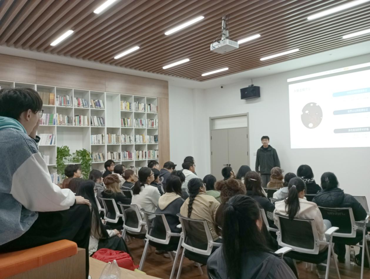 活动由棋牌协会的两位业余五段棋手担任主讲,为在场同学系统传授围棋基础知识与对弈策略。他们带领同学们探寻围棋的历史源流与文化内涵,感受这项传统技艺的独特魅力;用生动通俗的方式,帮助同学们快速掌握棋盘、棋子、气、吃子等核心规则;通过实用口诀与简单战术教学,引导同学们现场体验“吃子”环节,掌握入门技巧。为助力同学们后续深化围棋学习、提升技艺水平,他们结合自身经验,分入门、进阶、高级三个层次,推介了适配的围棋学习书籍。