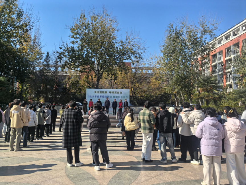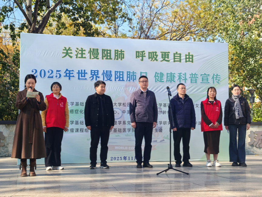 11月19日,世界慢阻肺日当天,由郑州大学党委学生工作部、学生处,松园社区以及基础医学院等单位举办的“松享汇”第55期——“呼吸不畅,当心慢阻肺”2025年世界慢阻肺日主题宣传活动在松园文化广场举行。本次活动通过社区宣讲、课堂授课、基地参观等多维形式开展。郑州大学松园社区主任兼党委学工部副部长、学生处副处长潘永建,基础医学院党委书记党敬川、副书记王乔健、病理生理学系主任路静等出席,基础医学院师生代表百余人参与活动。
