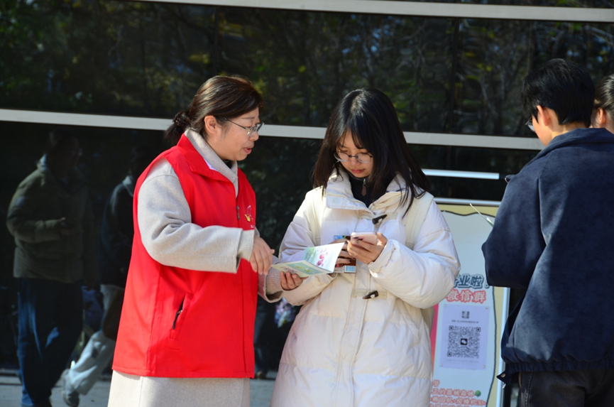 在社区文化广场科普区,杨婉景副教授通过图文展板、案例解析等形式,系统讲解慢阻肺的发病机制与高危因素,重点强调吸烟、空气污染等风险源防控,并推介肺功能检查这一诊断“金标准”。在“防治问答角”处,现场师生咨询不断,志愿者团队针对师生问题逐一解答。扫码答题领奖环节吸引众多师生参与,2023级学生解晓凤在参与后表示:“既学到了实用健康知识,又收获了暖心奖品,这样的活动特别接地气。”