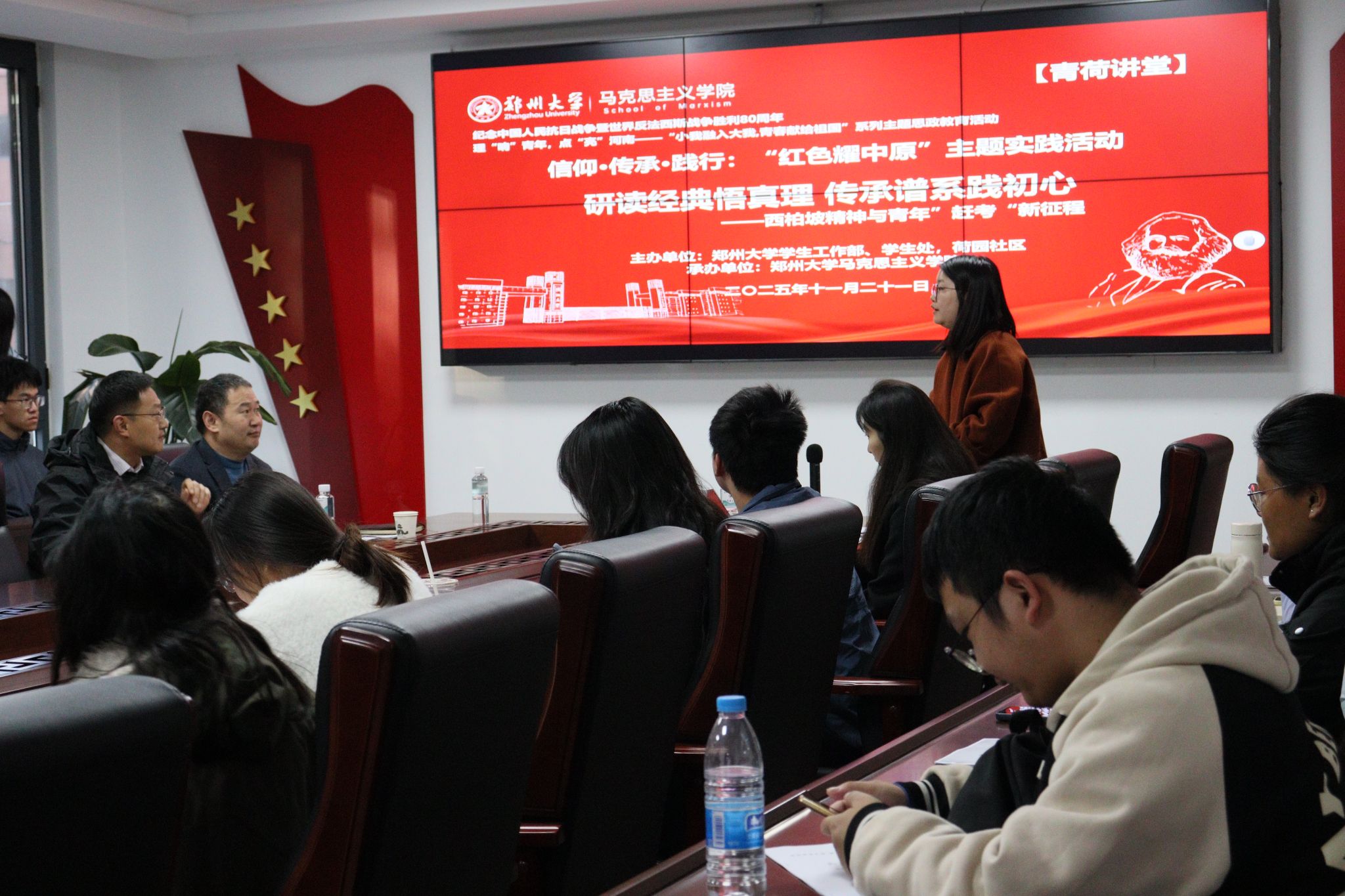 11月21日,荷园社区成功举办“青荷讲堂”第31期——“信仰·传承·践行:‘红色耀中原’”主题实践活动。荷园社区主任、党委学生工作部副部长、学生处副处长刘红生,马克思主义学院党委副书记徐承向,青年教师刘熠华及相关师生代表参加此次活动。