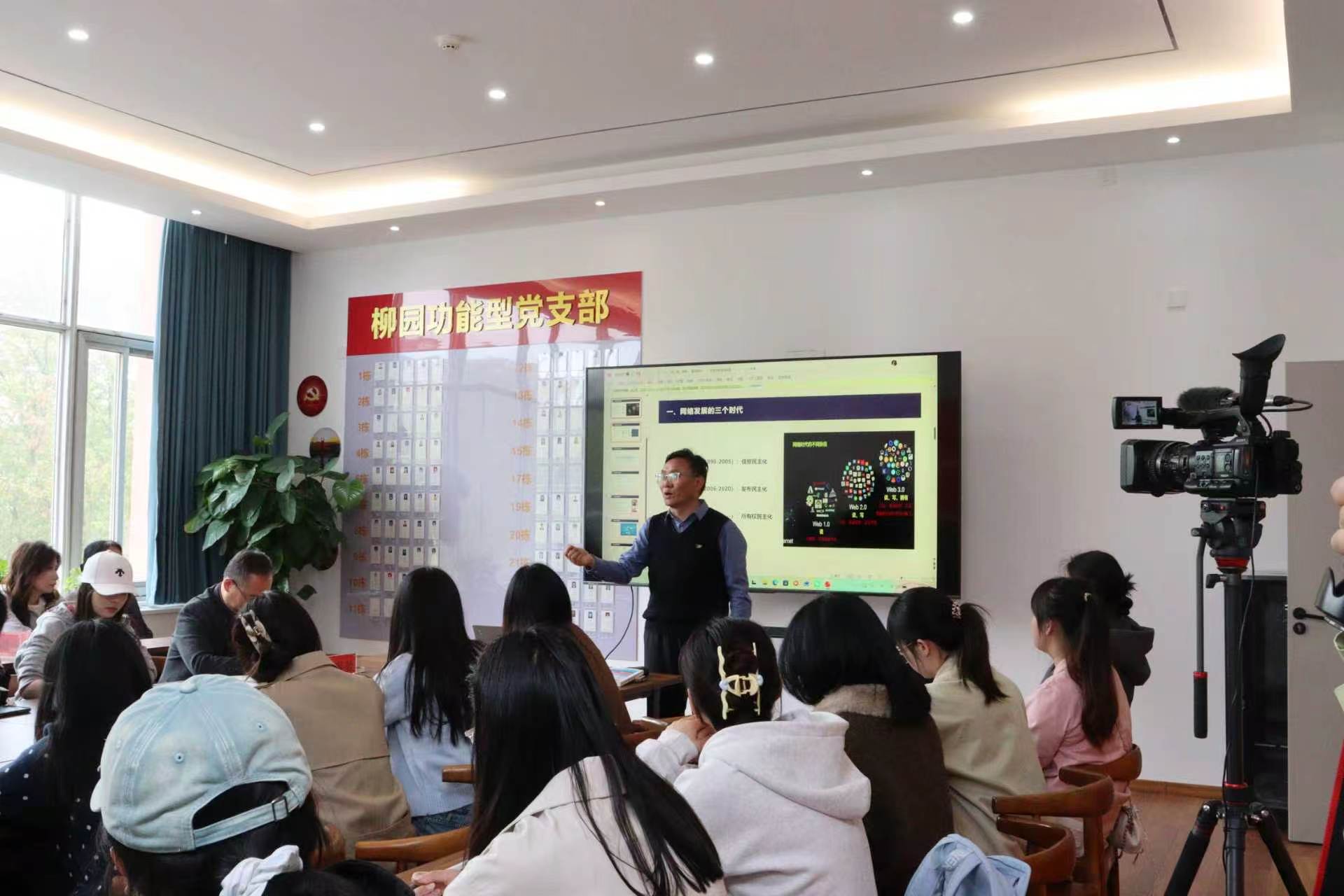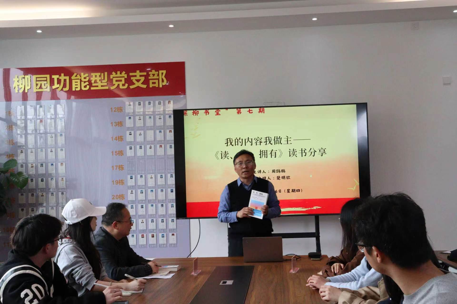 3 月 26 日,由郑州大学柳园社区主办、新闻与传播学院承办的“深柳书堂”第 7 期读书分享活动在柳园社区党建活动室开展。活动邀请新闻与传播学院教授、博士生导师周鹍鹏担任主讲,柳园社区相关负责人、学院读书会指导老师及50 余名学生代表参加,活动由副教授楚明钦主持。
