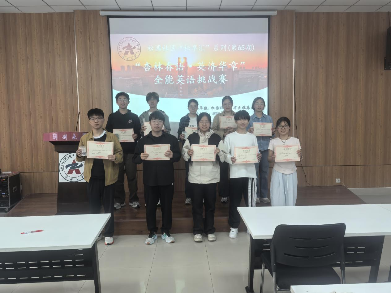 4月20日,由郑州大学党委学生工作部、学生处、松园社区以及省医临床医学院联合举办的“松享汇”第65期:“杏林春语英济华章”全能英语挑战赛在松园社区成功举办。