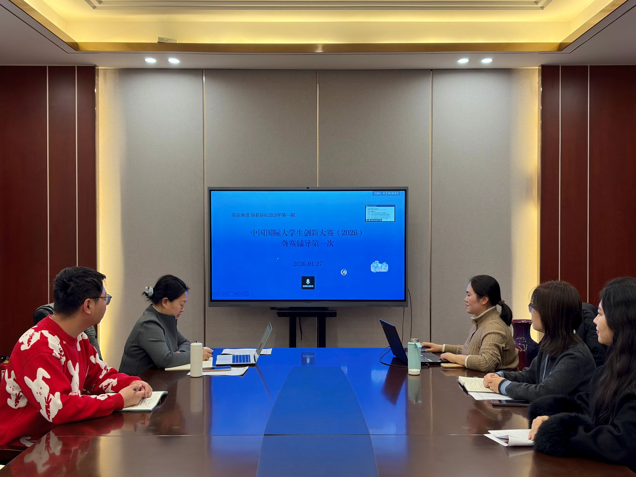 1月27日,商学院“郑论商道・创新讲坛”2026年首期活动在线上举办。本期聚焦中国国际大学生创新大赛备赛指导与双创人才培养,特邀华东理工大学创新创业教育中心副主任司忠业副教授主讲,院党委副书记、纪委书记王传芳线上主持,学院竞赛项目主管金融系副教授王磊玲、本科生辅导员游云泽、卢家昕、杨洋等线下参会,学院关注学生竞赛的师生百余人线上参与了活动。司忠业系统解读了大赛发展背景、赛制核心要点及近年来的发展趋势,...