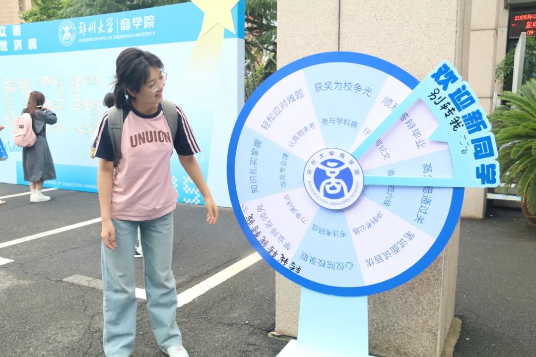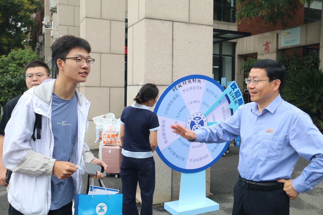转盘抽祝福、“愿在商院·新程璀璨”许愿气球、主题拍照墙、台阶寄语等多元互动环节,将励志引导融入趣味体验,在轻松氛围中帮助新生树立目标,也赢得家长一致好评。