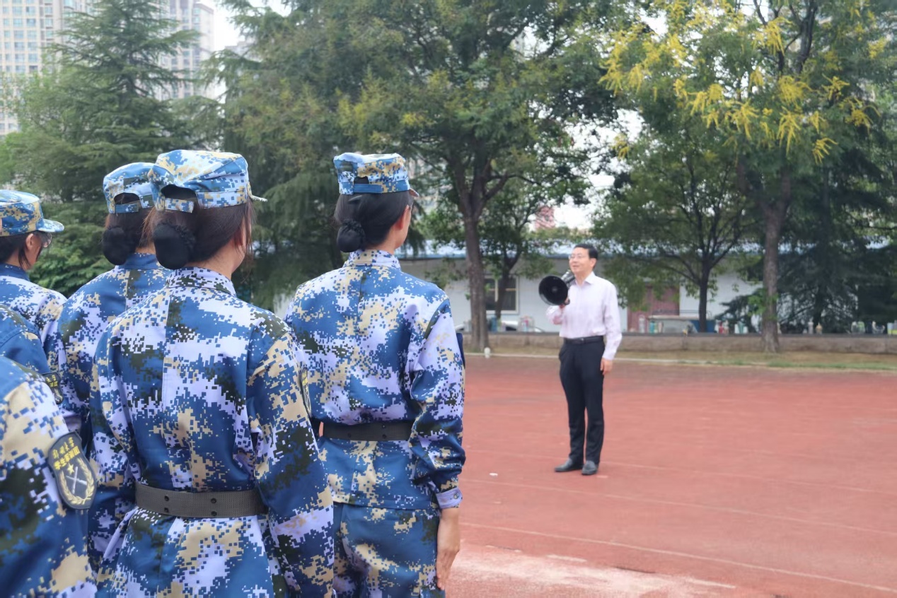 站军姿、走正步、喊口号,训练场是青春的磨刀石。一次次重复,是毅力的锤炼;一声声呐喊,是信念的凝聚。军训期间,学院领导走进训练场,关切询问训练情况。鼓励新同学们磨砺体魄、坚定意志。