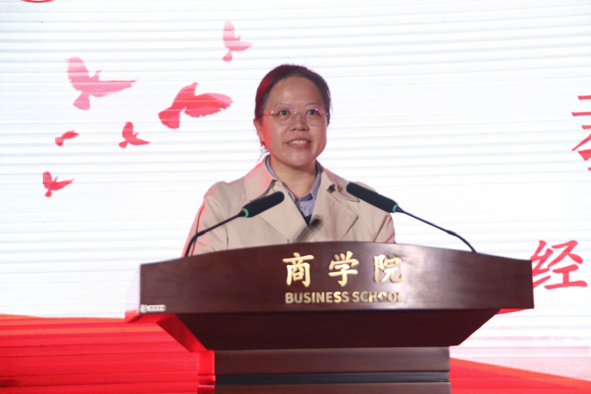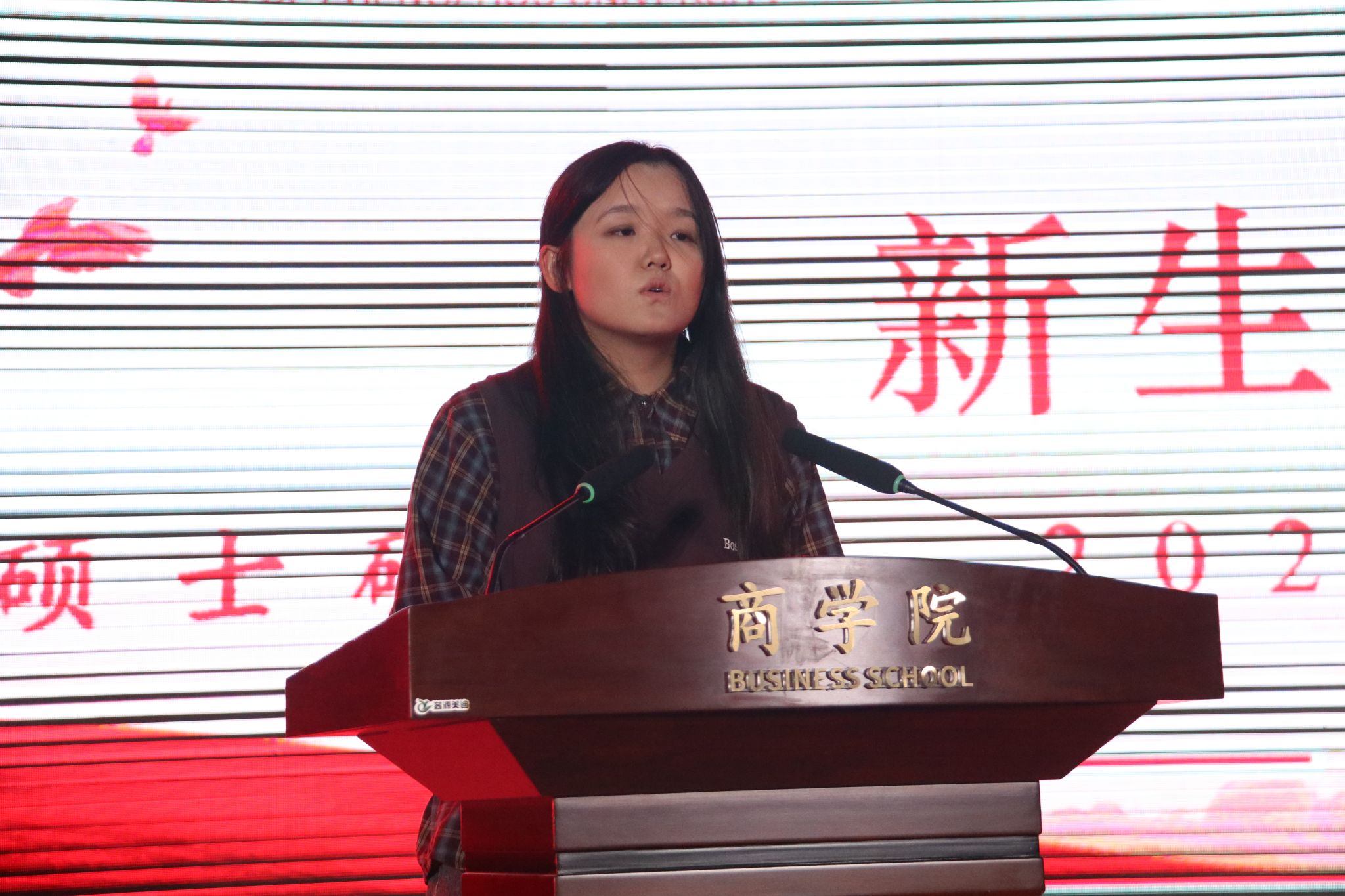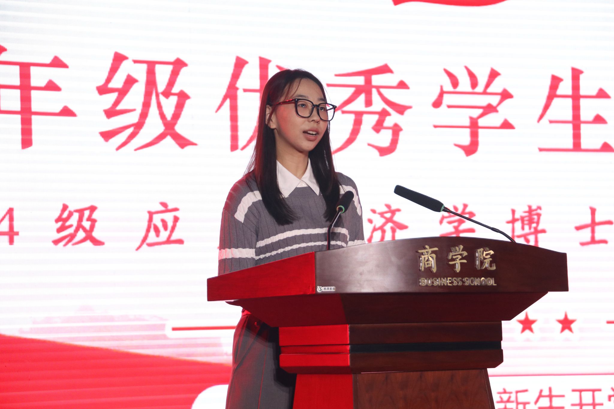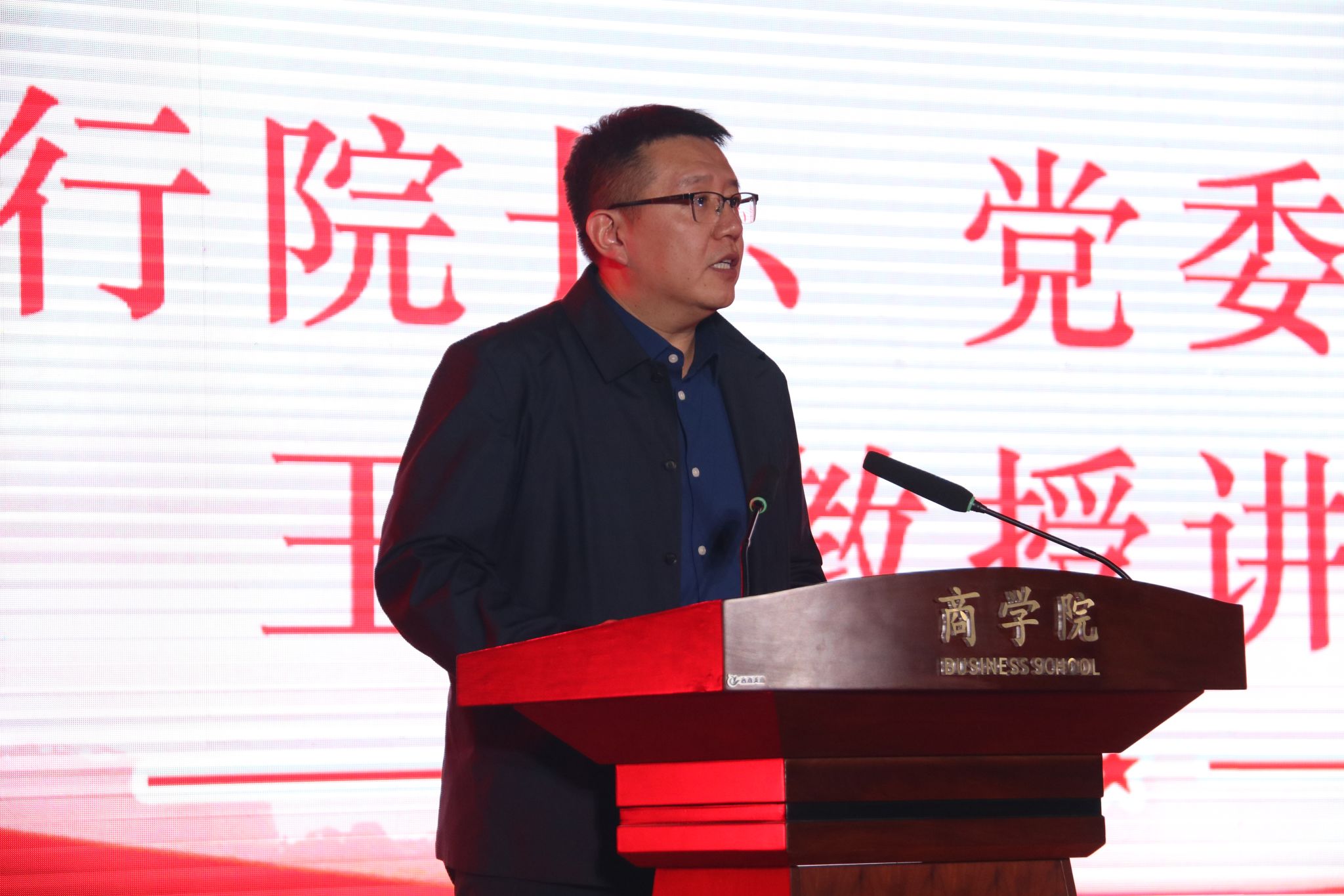 王宁代表学院致辞。他介绍了商学院的发展历程,寄语新生珍惜大学时光,并向全体新生提出三点期望:“涵养家国情怀,勇担时代使命”、“保持求知热情,培养创新思维”、“锤炼品德修养,恪守人生正道”。鼓励同学们将个人成长融入国家发展,努力成为堪当民族复兴大任的时代新人,为国家进步贡献青春力量。