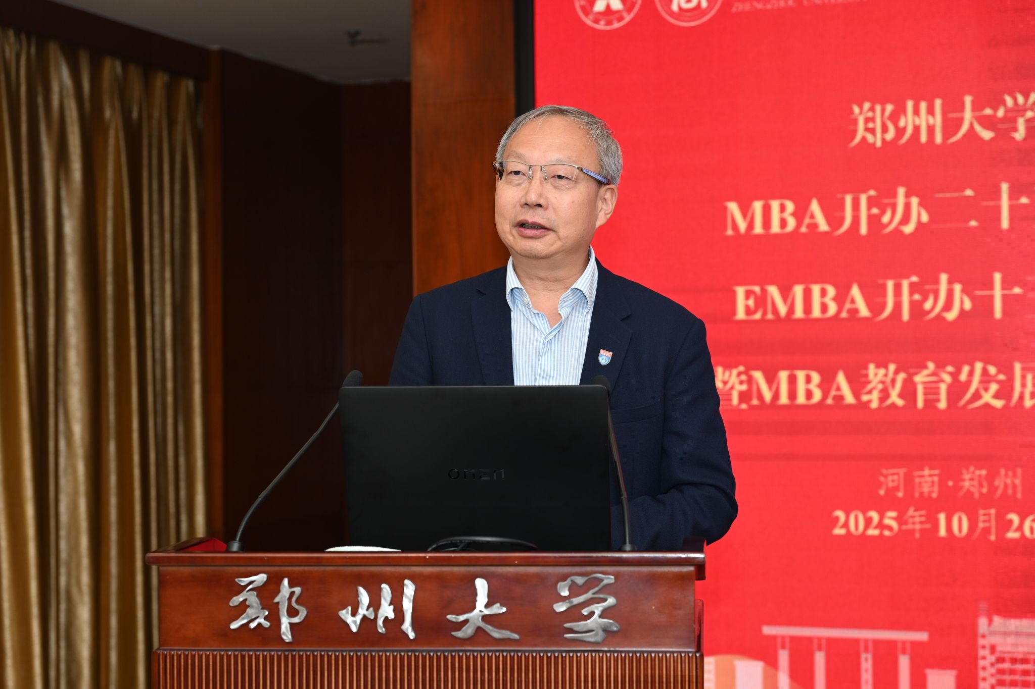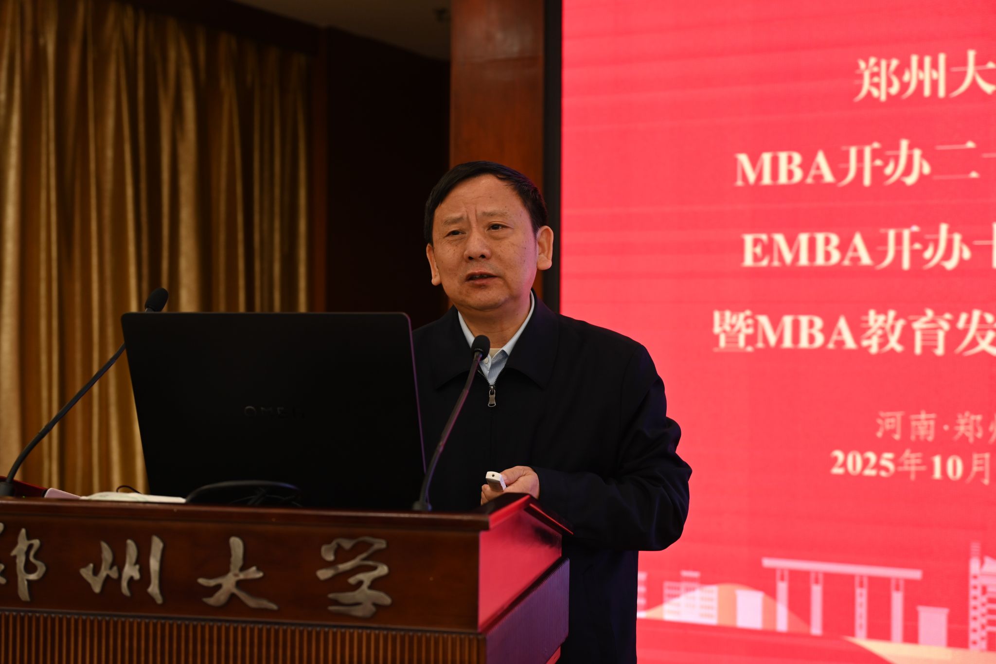 10月26日上午,郑州大学MBA开办二十五周年/EMBA开办十五周年暨MBA教育发展研讨会在郑州大学综合管理中心第二报告厅举行。中南财经政法大学校长朱方伟教授,江西财经大学原党委书记卢福财教授,全国工商管理专业学位研究生教育指导委员会秘书处办公室王萍主任,郑州大学党委常委、副校长王海杰教授,西安交通大学管理学院、河南大学商学院、河南科技大学商学院、河南师范大学商学院、河南财经政法大学黄河商学院等兄弟高校MBA培养单位负责人,学校相关职能部门主要负责同志,商学院党政主要负责同志出席开幕式。