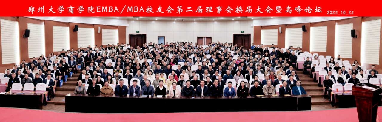 10月25日,商学院EMBA/MBA校友会换届大会暨高峰论坛在郑州大学新校区校行政楼第一报告厅隆重举行。郑州大学校友总会办公室副主任、教育发展基金会副理事长兼秘书长陈颖,校友总会办公室副主任兼秘书长孟莉莉,商学院党委书记魏忠,执行院长王宁,党委副书记秦毅男、王传芳等领导出席本次会议。清华大学经管EMBA河南校友联谊活动组委会会长李向才、厦门大学EMBA河南校友会会长郭晓建及秘书长刘灿、北大光华EMBA中原校友会秘书长王继鹏、长江商学院河南校友会秘书长李国建、西安交通大学EMBA校友会韩营丽应邀出席。参加会议的还有EMBA/MBA教育中心的资深教师及校友500余位。
