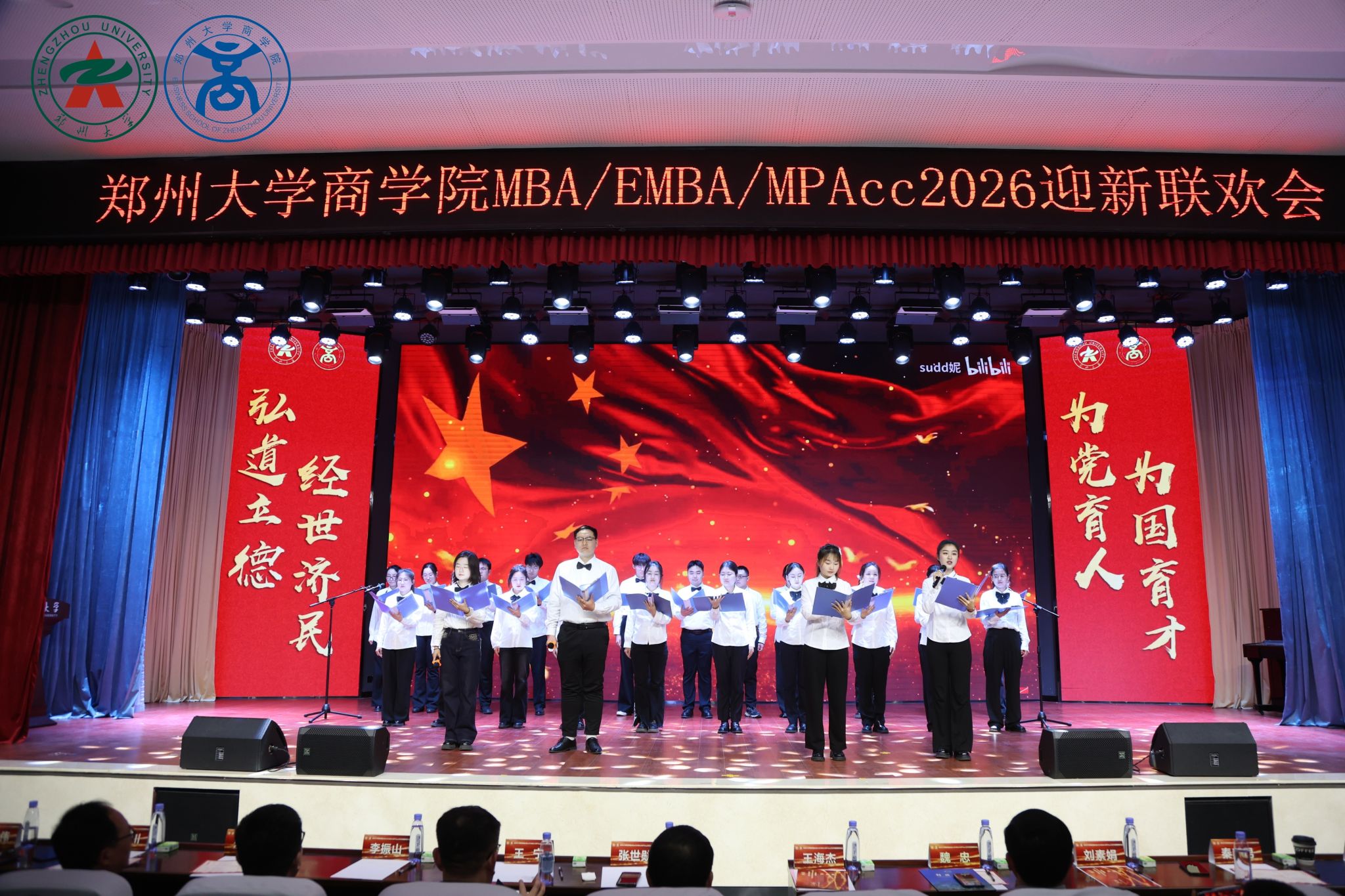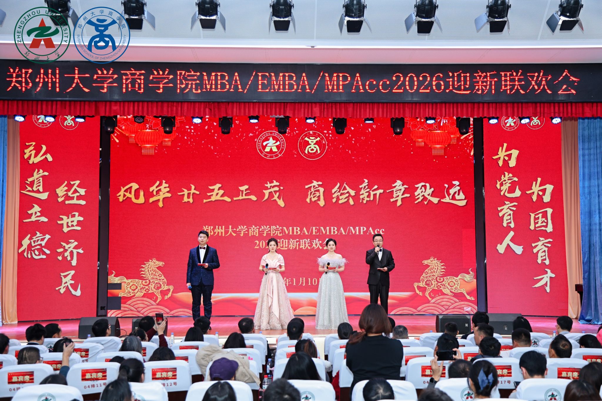 1月10日下午,“风华廿五正茂,商绘新章致远”郑州大学商学院MBA/EMBA/MPAcc2026年迎新联欢会在郑州大学主校区大学生活动中心隆重举行。郑州大学党委常委、副校长王海杰出席并讲话。研工部部长、研究生院副院长张世勋,校团委副书记李振山,电气与信息工程学院党委副书记秦毅男,材料科学与工程学院党委副书记宋刚等领导受邀出席,商学院全体领导班子、捐赠企业代表、校友嘉宾以及2025级全体新生欢聚一堂,共迎新春、共叙情谊、共话未来。