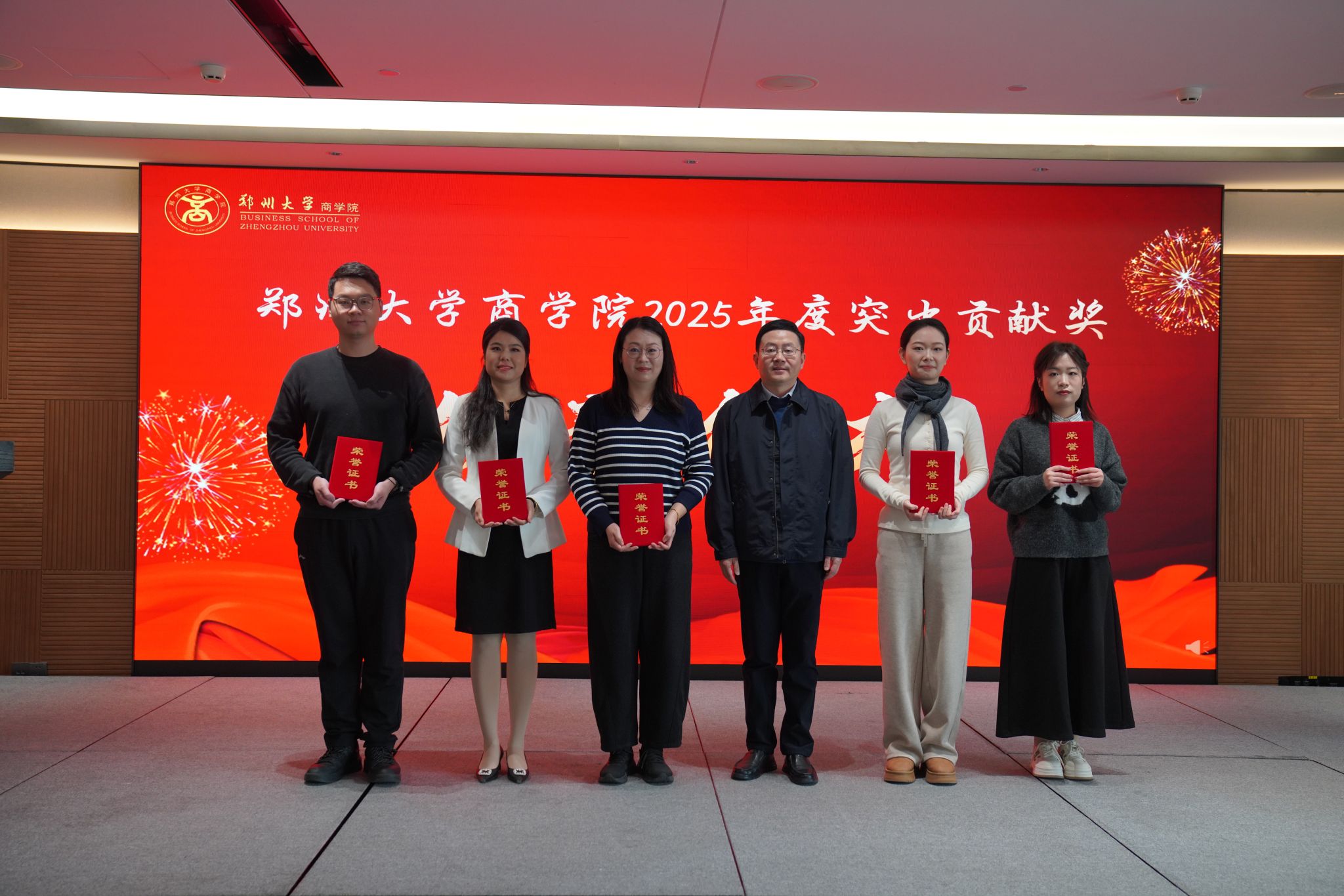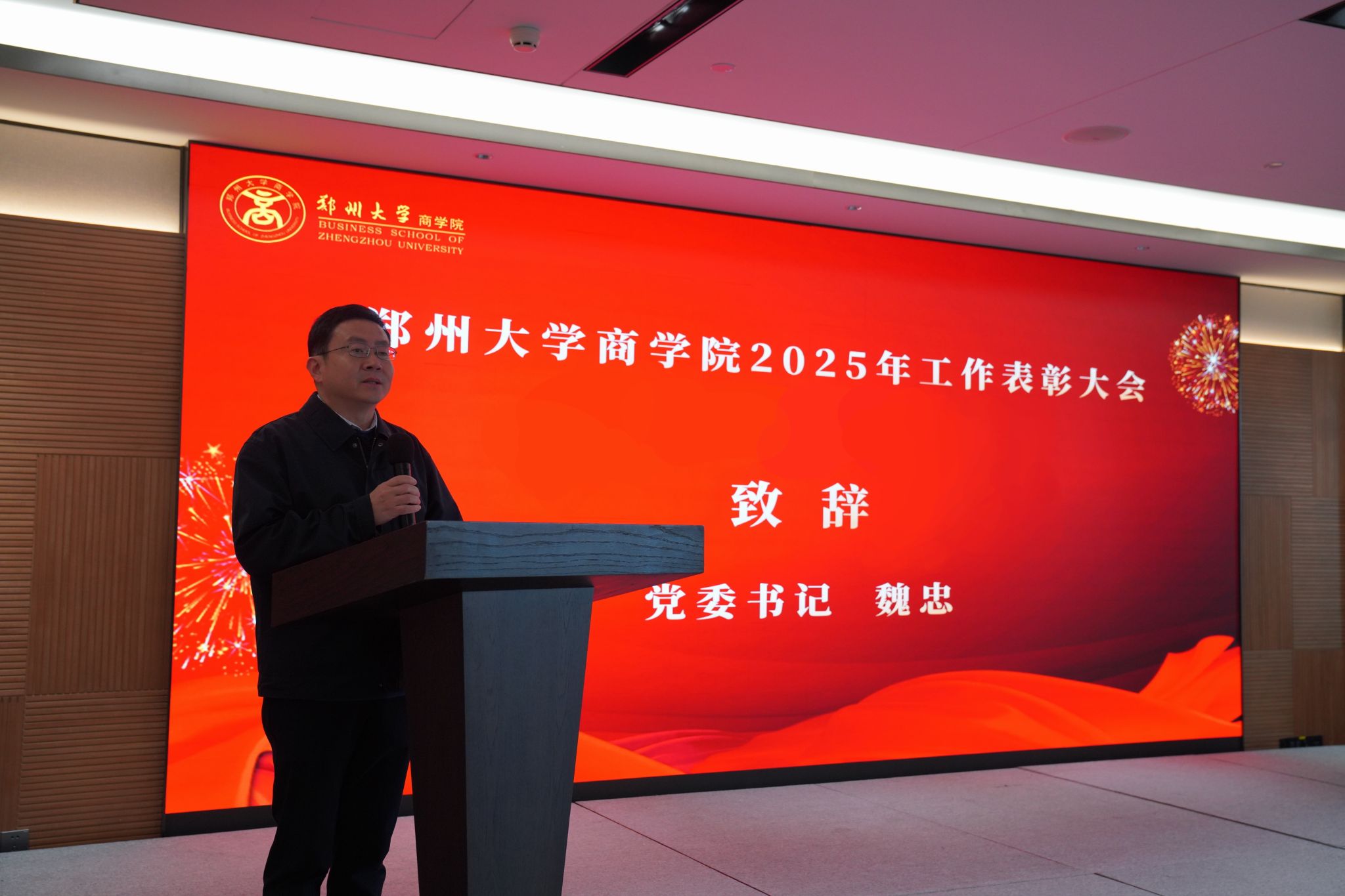 2026年1月23日上午,郑州大学商学院2025年度工作总结暨表彰大会隆重举行。本次大会由校友慷慨支持,学院领导班子成员、全体教职工齐聚一堂,在温馨而庄重的氛围中,全面回顾奋进足迹、隆重表彰先进典型,凝聚推动高质量发展的强大合力。