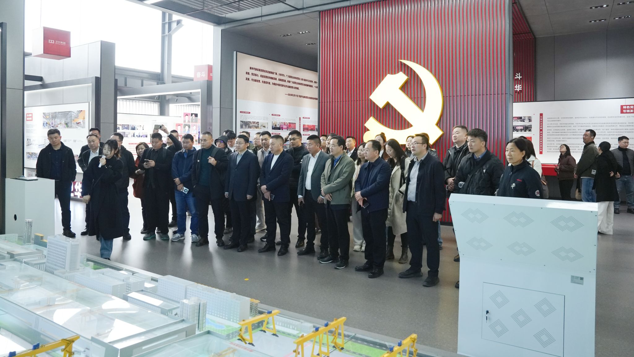 在企业工作人员引导下,商学院师生一行实地参观了卫华集团展厅与生产厂区,全面了解企业发展历程、技术创新成果、全球业务布局以及企业文化建设情况,近距离感受装备制造行业的发展态势与企业坚守实业、创新实干的发展精神。