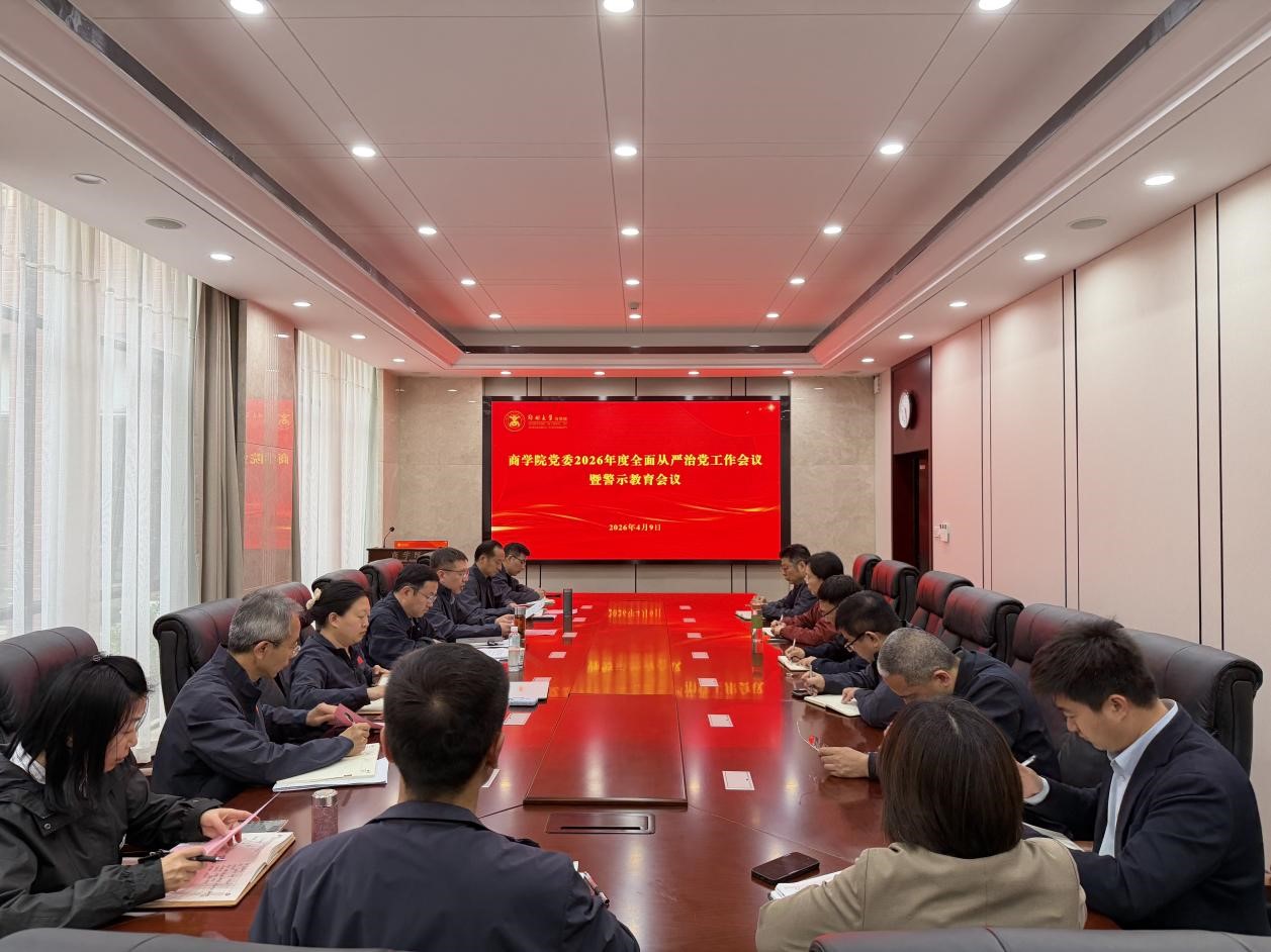 4月9日下午,商学院2026年度全面从严治党工作会议暨警示教育会议在110会议室召开。院党委委员、纪委委员、各党支部书记及系主任参加会议,会议由党委副书记、院长王宁主持。