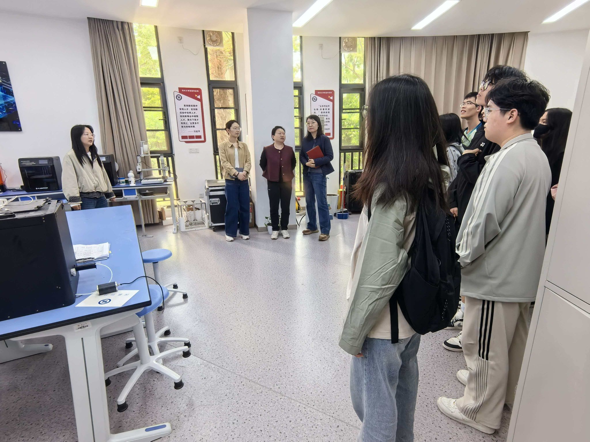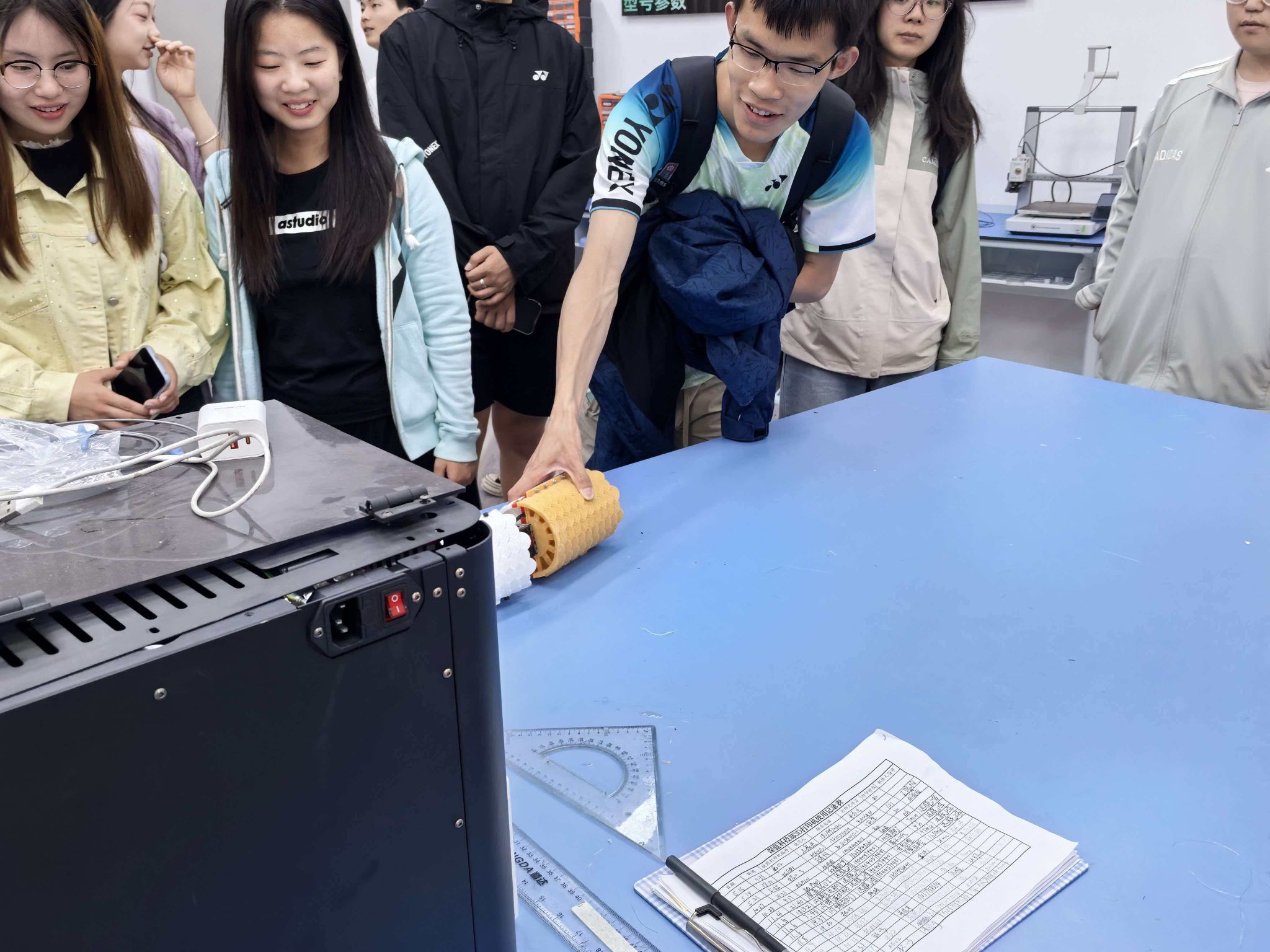 师生实地参观深蓝学生创新中心。深蓝学生创新中心负责人细致讲解3D打印原理、材料应用与科创实践案例,并展示成品。商学院师生观摩全流程,切实体会工科技术的创新赋能价值,为两院跨学科协作奠定基础。
