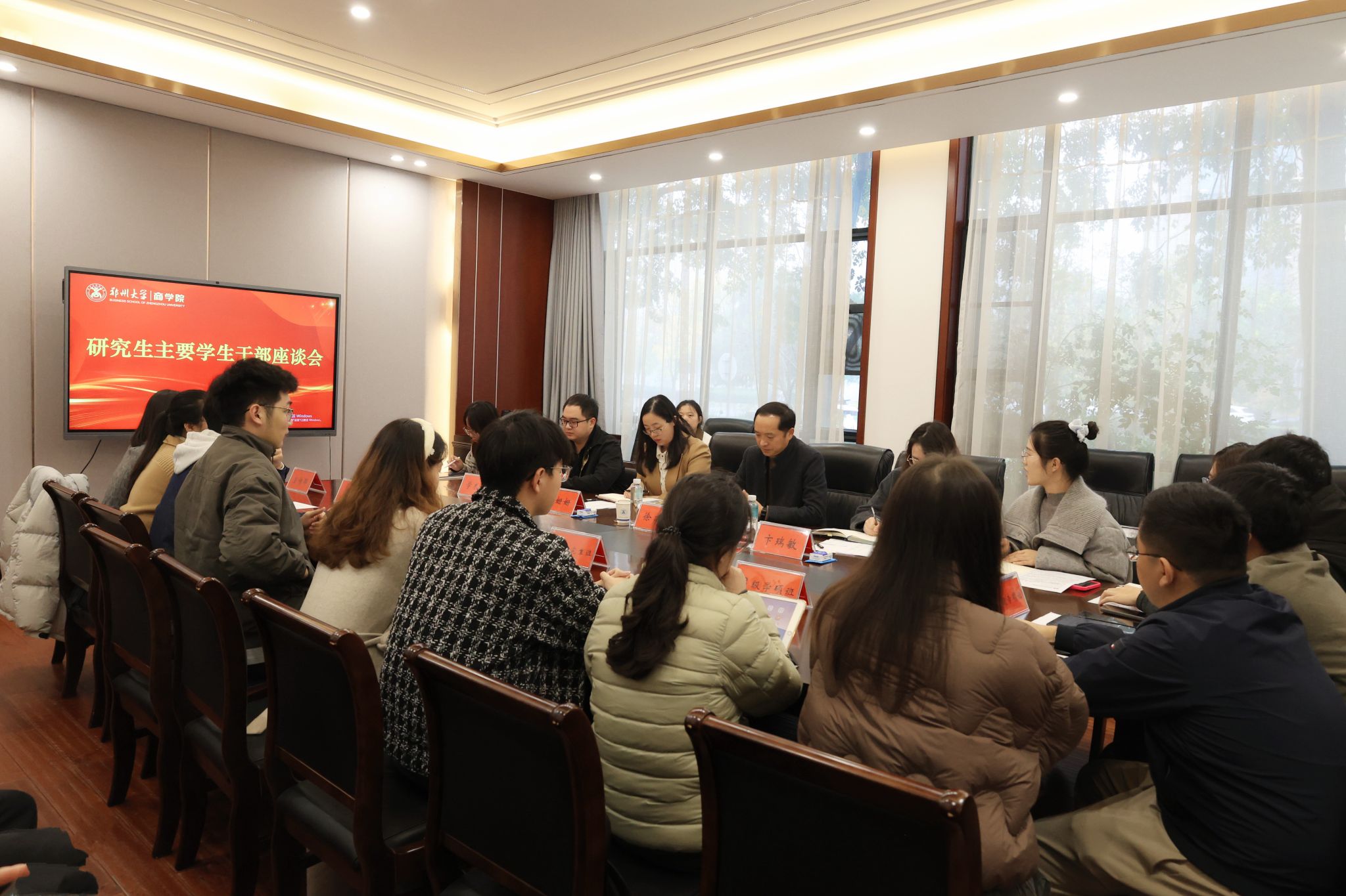 11月7日,商学院召开主校区研究生主要学生干部座谈会。院党委副书记徐建伟出席,研究生办主任兼辅导员宋姗姗,研究生辅导员卞瑞敏,主校区硕博研究生各年级党/团支部书记、班长、院研究生会主席团成员及各部门部长参加座谈会。