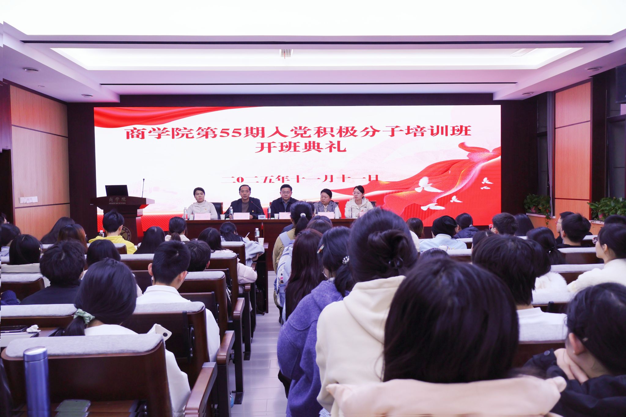 11月11日晚,商学院第55期业余党校入党积极分子培训班开班典礼在商学院102学术报告厅举行。院党委书记魏忠,党委副书记、纪委书记王传芳,党委副书记徐建伟,各学生党支部书记以及第55期入党积极分子培训班167名学员参加。开班仪式由徐建伟主持。