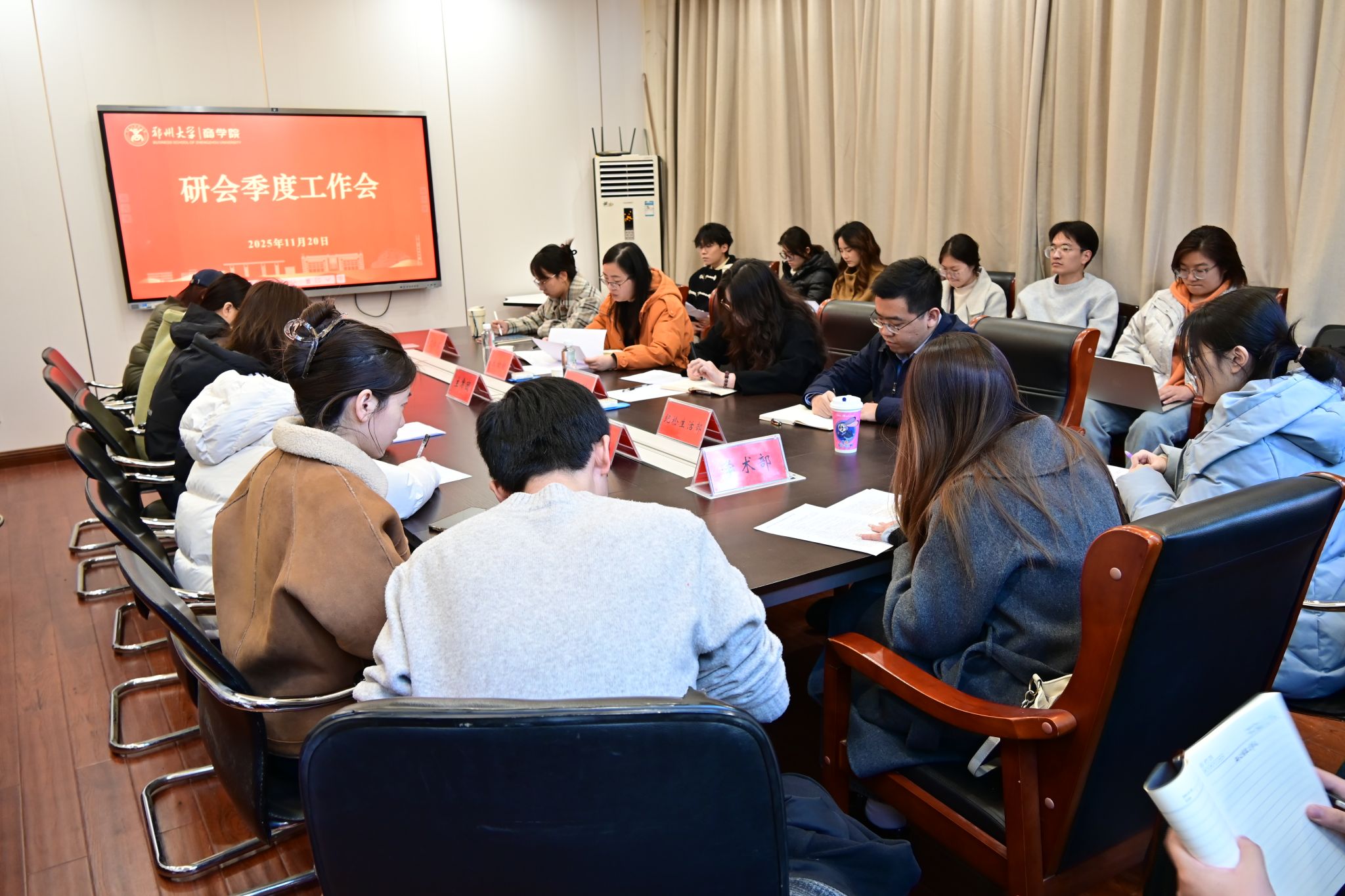 11月20日,商学院召开研究生会第三季度工作会。研究生办主任兼辅导员宋姗姗,研究生辅导员卞瑞敏出席,研究生会主席团成员、各部门代表参加会议。