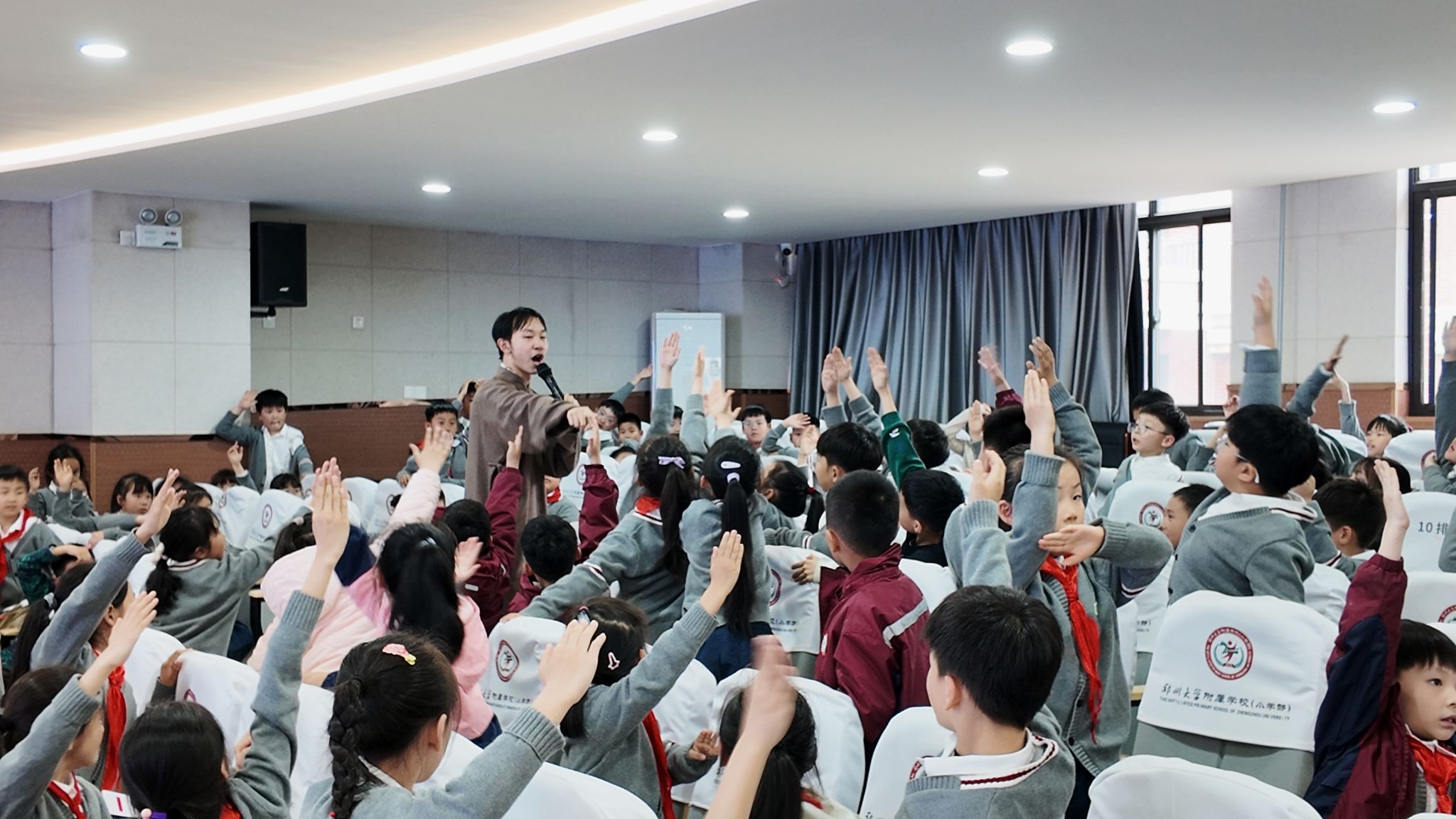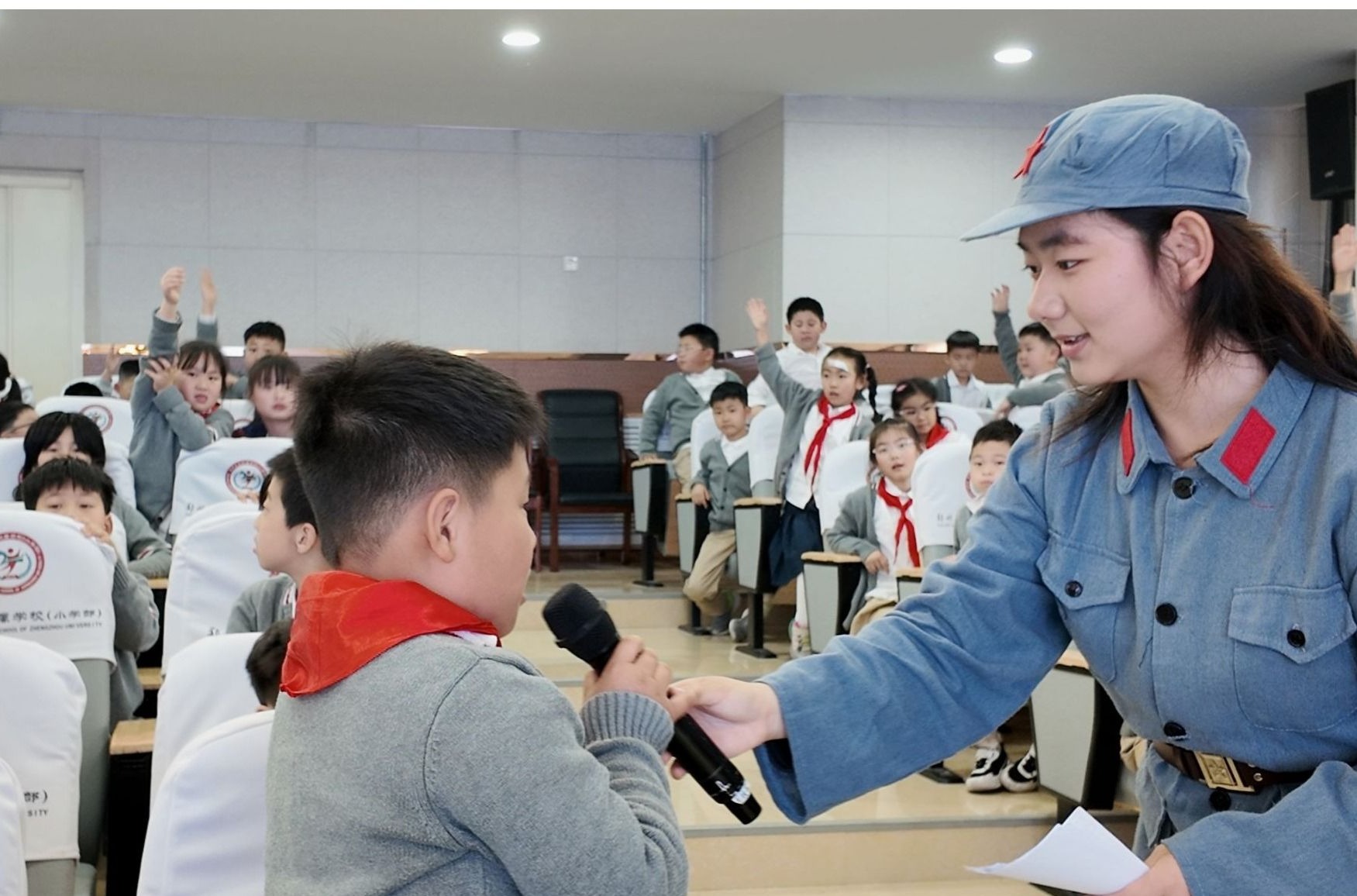本次宣讲还结合低年级小学生认知特点精心设计了互动环节,宣讲团同学们通过现场问答、集体互动的形式,进一步拉近了红色历史与青少年的距离,整场演出秩序井然、氛围浓厚。