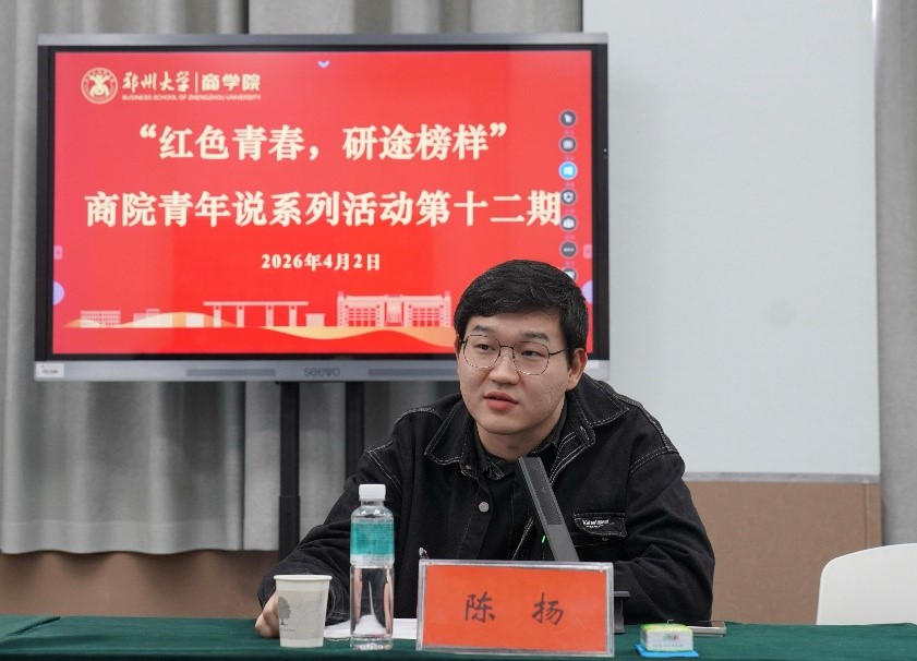 4月2日上午,第十二期“红色青春,研途榜样”商院青年说系列活动在515会议室顺利举行。活动特邀学院青年教师陈扬担任主讲人,围绕“从郑大学子到郑大教师的成长路径”主题开展经验分享。活动由研究生辅导员卞瑞敏主持,学院博士研究生参会。