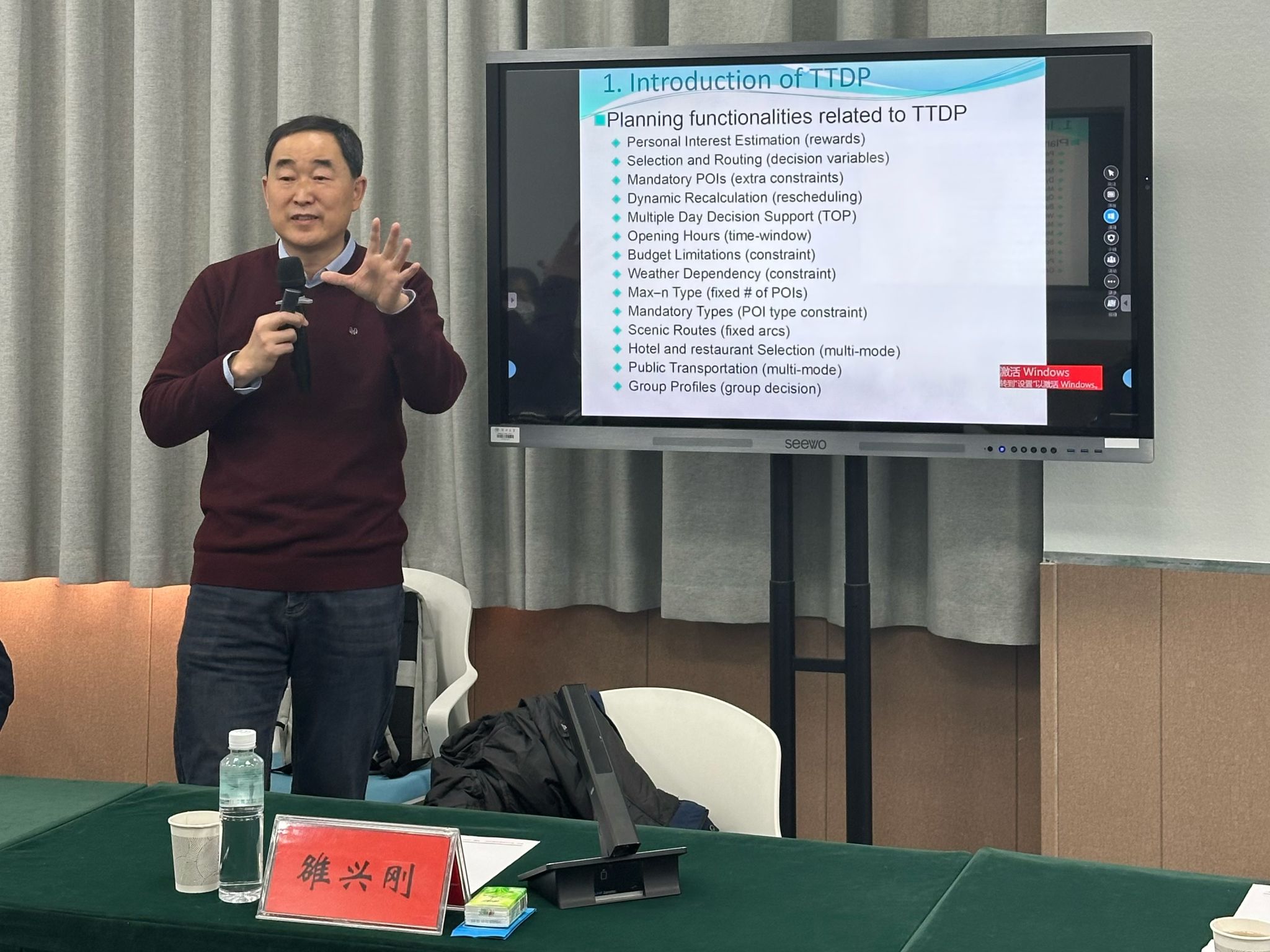 雒教授以旅游行程设计问题(TTDP)为核心展开专题报告,系统梳理该领域的理论框架、技术方法与前沿进展。雒教授指出,TTDP旨在为旅游者设计包含多个景点的最佳旅游路线,并通过科学建模将这一实际需求转化为运筹学中的经典优化问题。当前该问题的求解主要包括运筹学领域基于优化的全局方法与计算机科学领域依托数据驱动的推荐方法。未来,TTDP问题的前沿方向包括不确定性场景下的行程优化、基于实时动态信息的规划模型,混合及精确优化算法等。报告最后,雒教授分享了其团队在该领域的最新研究成果与实践应用,为理论研究与技术应用提供了重要参考。