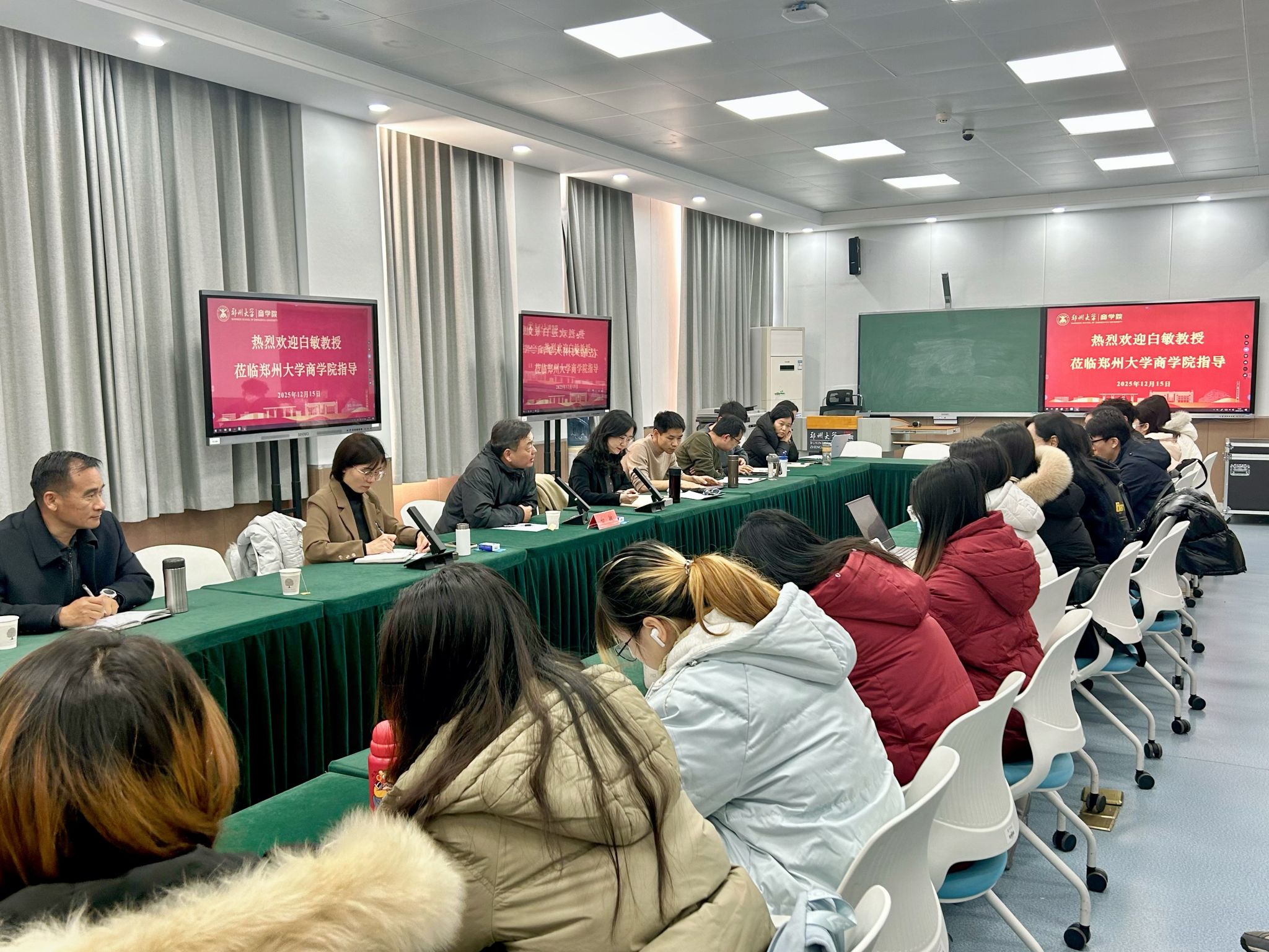 12月15日,我院主办的“外国专家大讲堂”在商学院515会议室举行。新西兰怀卡托大学管理学院金融系主任、博士生导师白敏受邀作《金融与会计前沿研究》专题报告,围绕学科前沿与国际期刊同行评审指南两大核心展开分享。我院金融系主任刘霞教授、副主任陈力朋副教授,会计系主任陈琪教授、副主任李莉副教授等教师及院研究生参会学习交流。本次讲座由院国际交流与合作项目主管高慧清主持。