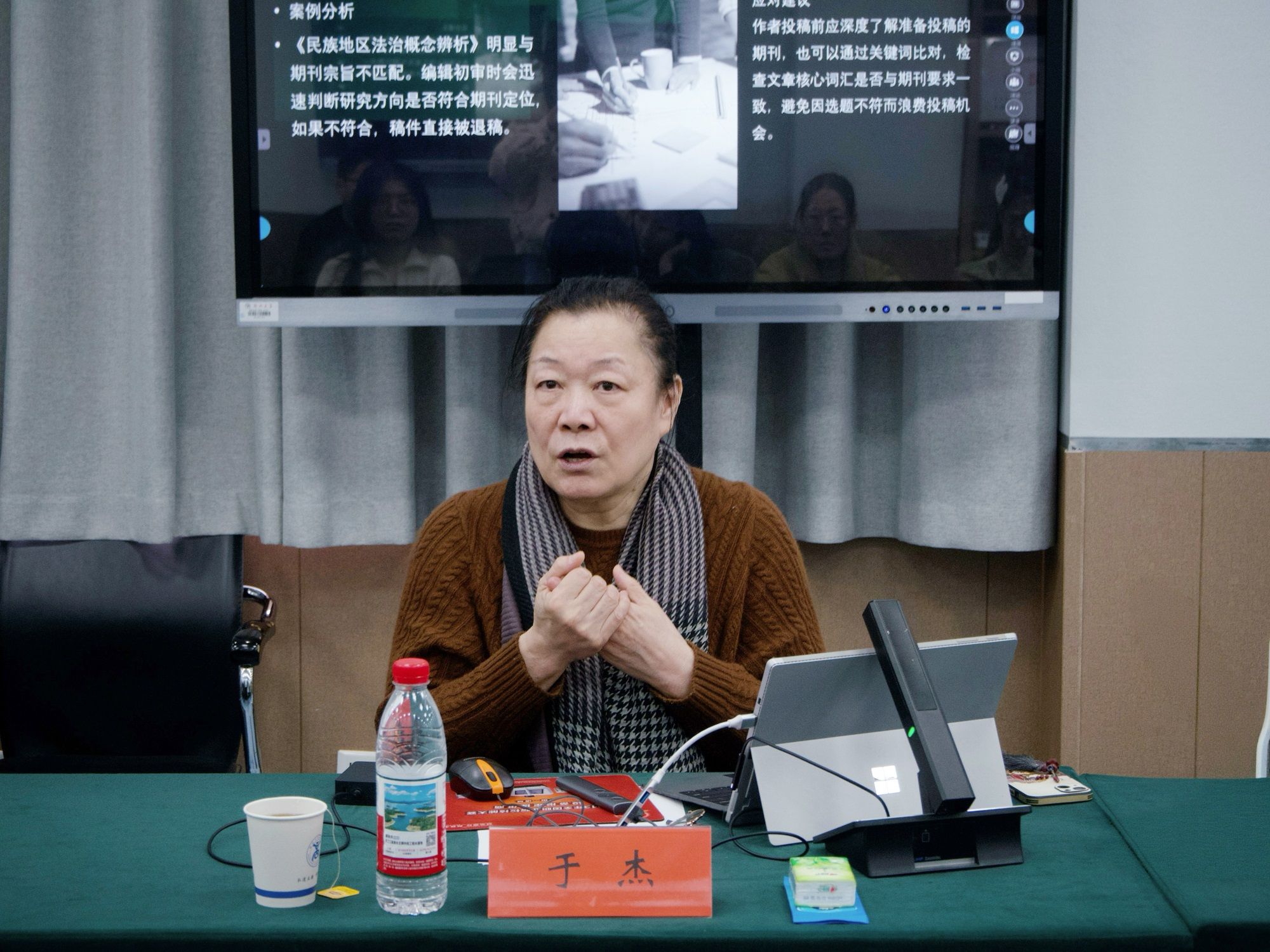 报告阶段,于杰介绍了《中国人口·资源与环境》中、英文版的办刊历程与审稿流程;围绕“论文发表与选题”的主题,针对问题感染力、外审痛点、终审标准、题目与摘要写法等逐一进行详细讲解。同时,从评阅人的角度重点建议,反复斟酌打磨选题,留下良好的文章第一印象;写好文献综述,奠定选题创新性的基石;注重与编辑部的有效沟通等。