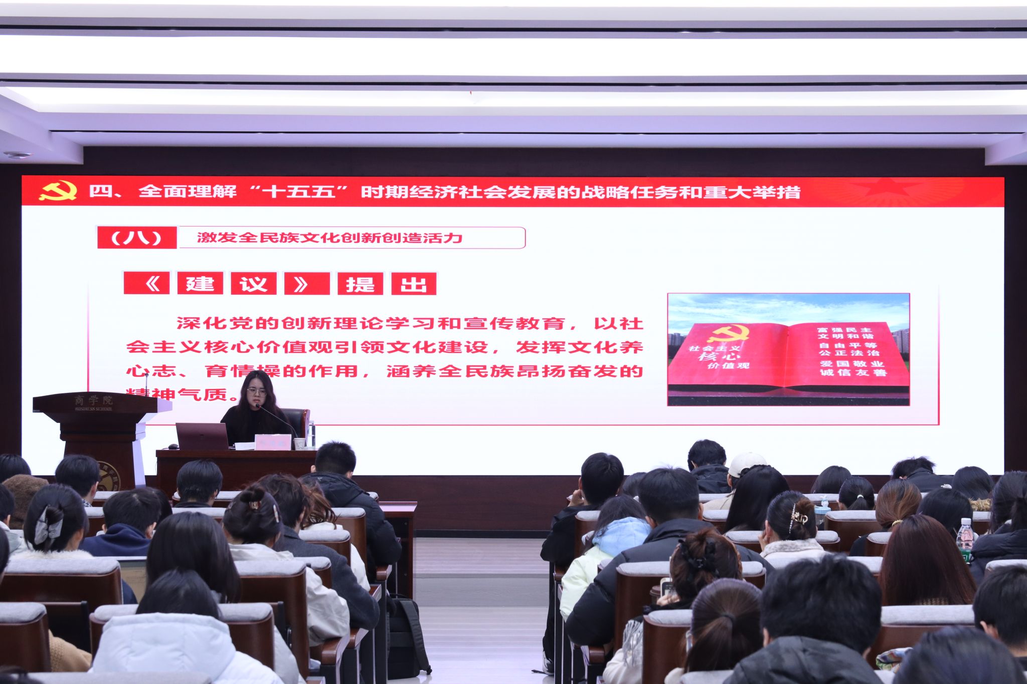 培训班第五讲由研究生管理办主任宋姗姗老师主讲,她的授课题目是《新时代党的创新理论与大学生成长成才》。宋姗姗老师深入解读了习近平新时代中国特色社会主义思想的核心内涵与时代价值,分析党的创新理论对大学生成长成才的引领作用。宋老师还结合大学生的学习、就业、创新创业等实际需求,引导学员运用党的创新理论指导实践,树立正确的世界观、人生观、价值观,在投身国家建设、服务社会发展中实现个人理想与人生价值。