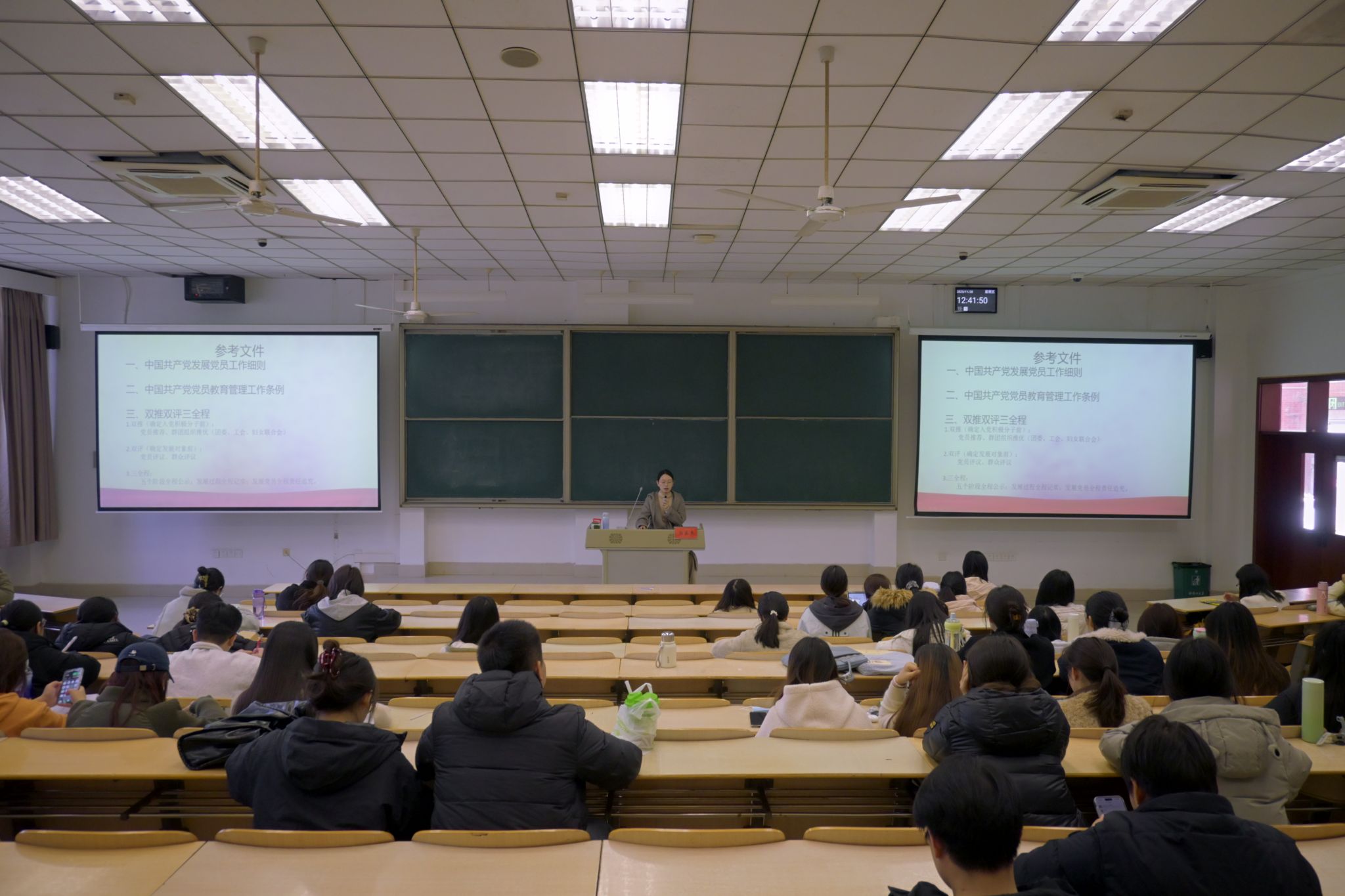 培训班第四讲由团委副书记、2022级辅导员郭英杰老师主讲,她的授课题目是《党员发展流程及注意事项》。郭老师结合自身丰富的党务工作经验,以清晰的逻辑、详实的案例,系统梳理了党员发展的全链条流程。她带领同学们明确各环节的具体要求、材料规范及常见问题。此外,郭老师还强调党员发展工作的严肃性和规范性,帮助学生准确掌握相关政策,确保党员发展质量。