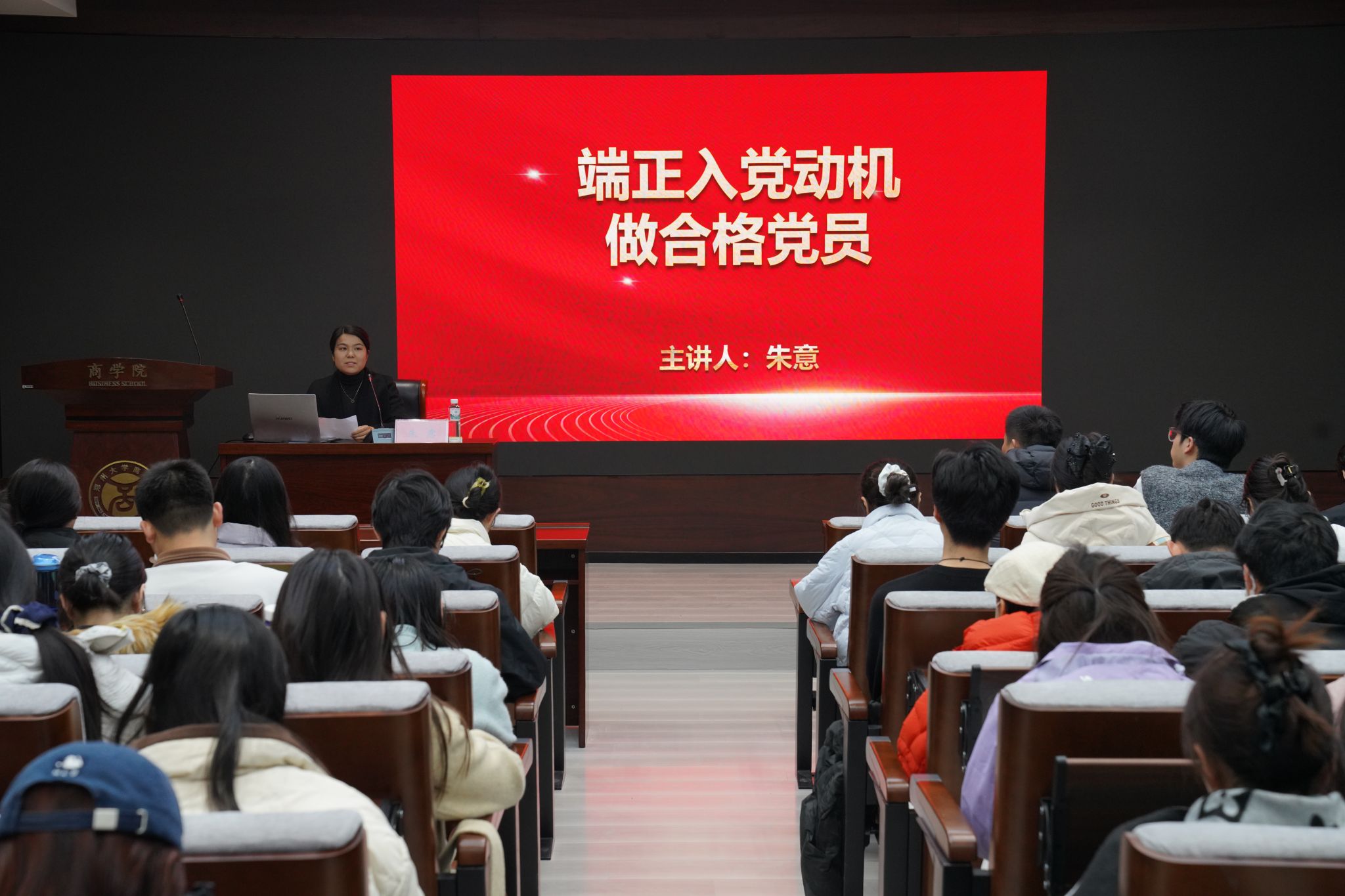 培训班第一讲由2024级辅导员朱意老师以《端正入党动机,做合格党员》为题授课。朱意老师深度剖析“为什么要入党”“怎样入党”“入党后怎么做”这三个核心问题,系统讲解入党具体流程及党组织对发展对象的要求,强调端正入党动机是规范入党行为、坚定入党信念、维护党的先进性和纯洁性的思想根基,引导同学们筑牢思想防线,以合格党员标准要求自己。