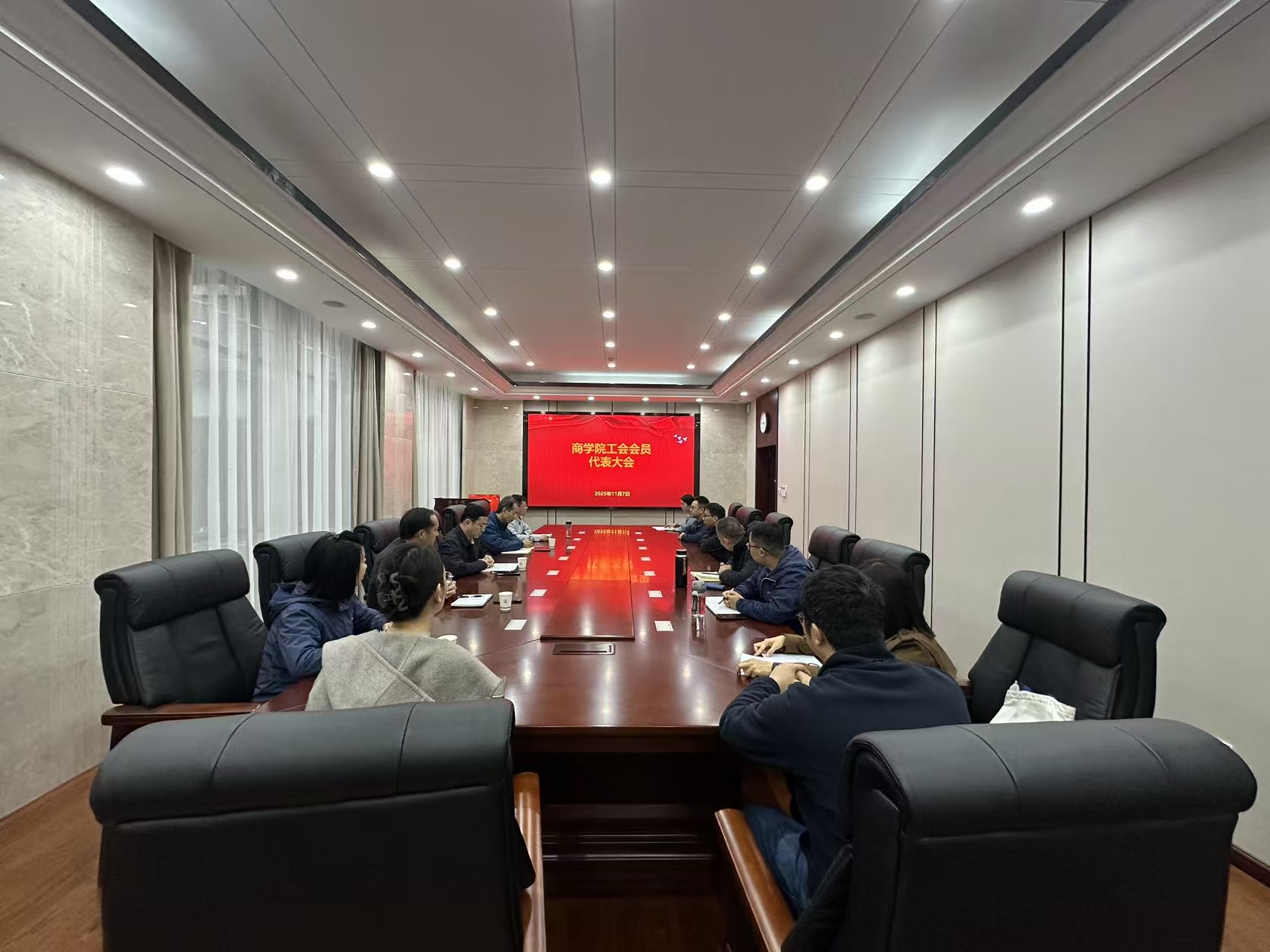 11月7日,商学院工会会员代表大会暨工会委员会会议隆重召开。学院全体班子成员、工会会员代表、现任工会委员及相关工作人员齐聚一堂,共同完成工会组织建设相关议程,为学院工会工作高质量发展擘画新蓝图。