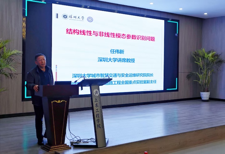 任伟新教授介绍了结构模态分析的基本理论与参数识别方法,对比了强迫振动法、自由振动法及环境振动法等测试方法的特点。针对土木工程结构实际运营中模态参数的时变与非线性特性,探讨了非线性模态分析和时变系统瞬时模态参数识别等关键问题,以大跨桥梁工程为例进行了具体应用分析。