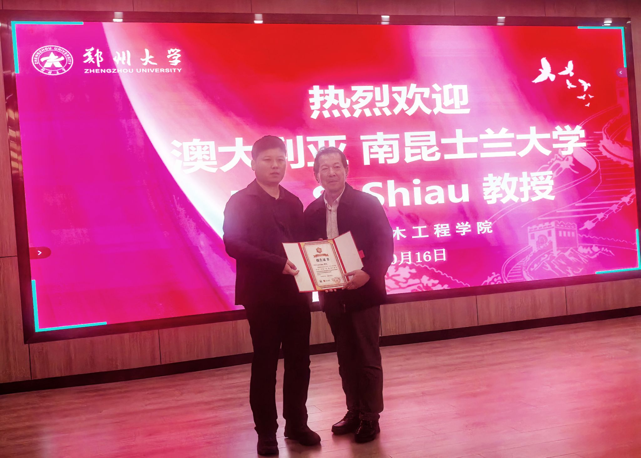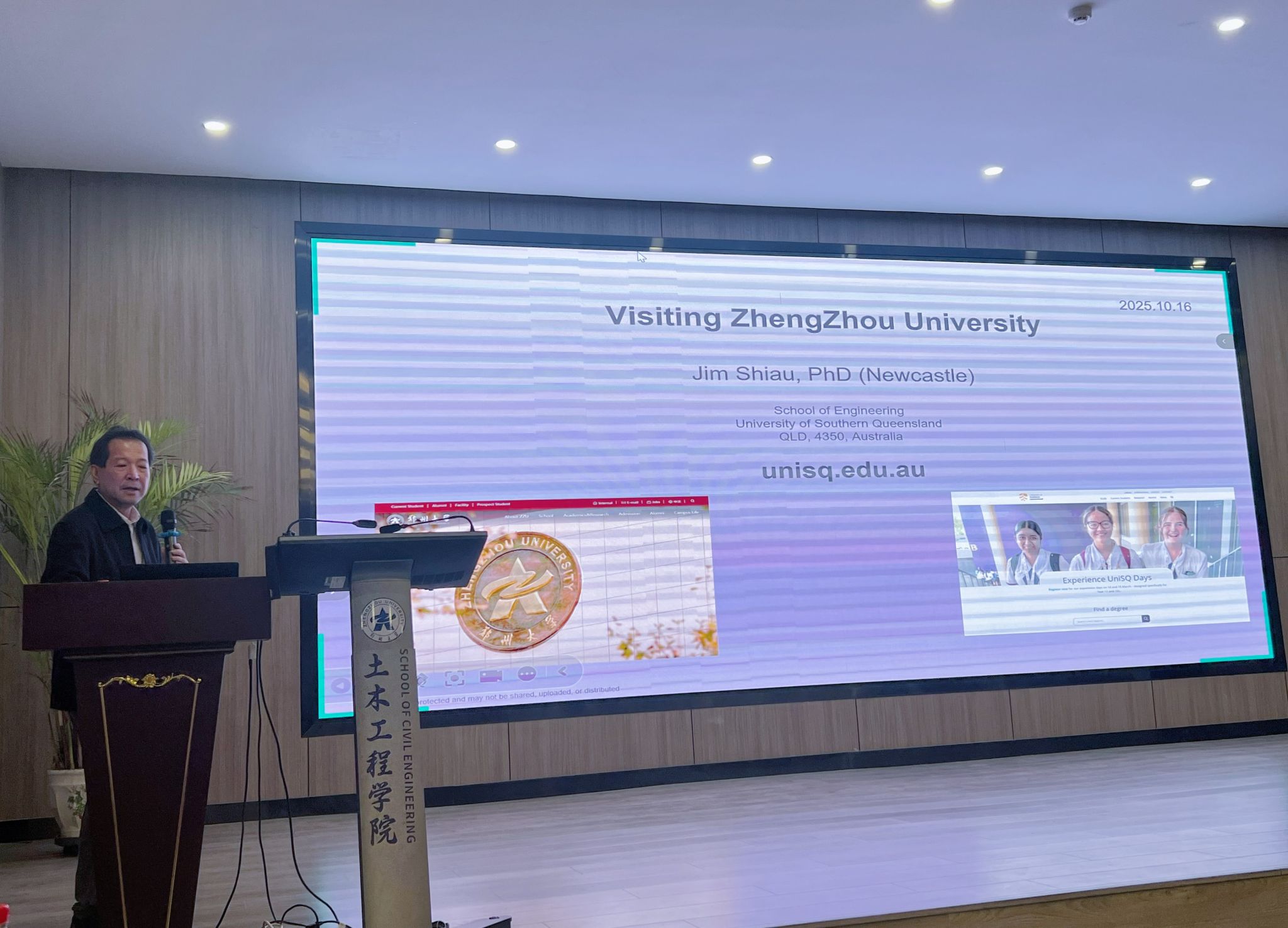 2025年10月16日,我院成功举办第三十三期国梁大讲堂,澳大利亚南昆士兰大学Jim S. Shiau教授作题为《From Australia to Zhengzhou: A Journey Through Research and Cultural Exchange》的学术报告。本次活动由郑州大学土木工程学院院长冯虎教授、副处级组织员高子鹤教授主持,学院青年教师、硕士研究生及国梁班本科生参加。