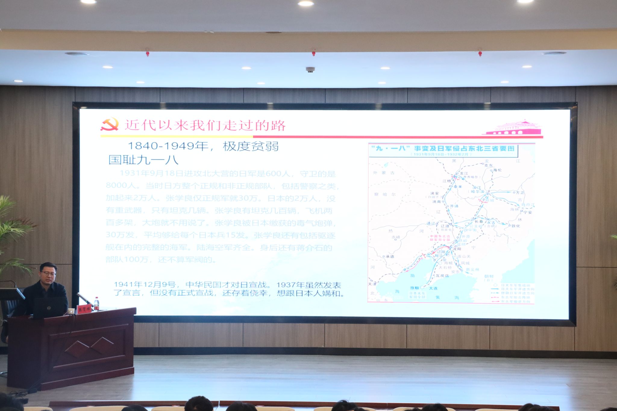 11月21日,张贺祥同志通过丰富的历史资料和生动的人物事迹,系统回顾了党在革命、建设和改革各个历史时期的光辉历程与伟大成就,深刻阐释了中国共产党为什么“能”、马克思主义为什么“行”、中国特色社会主义为什么“好”,进一步坚定了同学们跟党走的信心和决心。