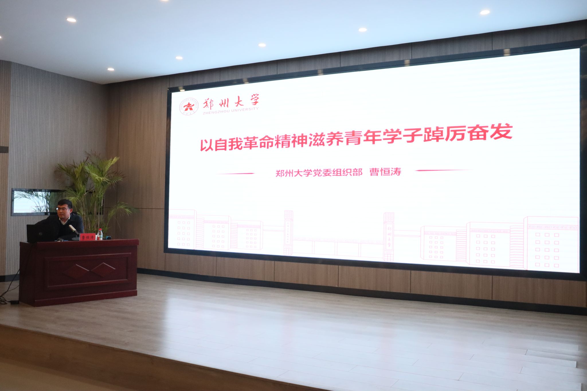 11月24日,曹恒涛同志聚焦党的自我革命这一鲜明品格,梳理了百年党史中党不断自我净化、自我完善、自我革新、自我提高的历程与实践。启发同学们要在学习与生活中发扬自我革命精神,勇于发现不足、改正错误,实现思想与能力的持续提升。