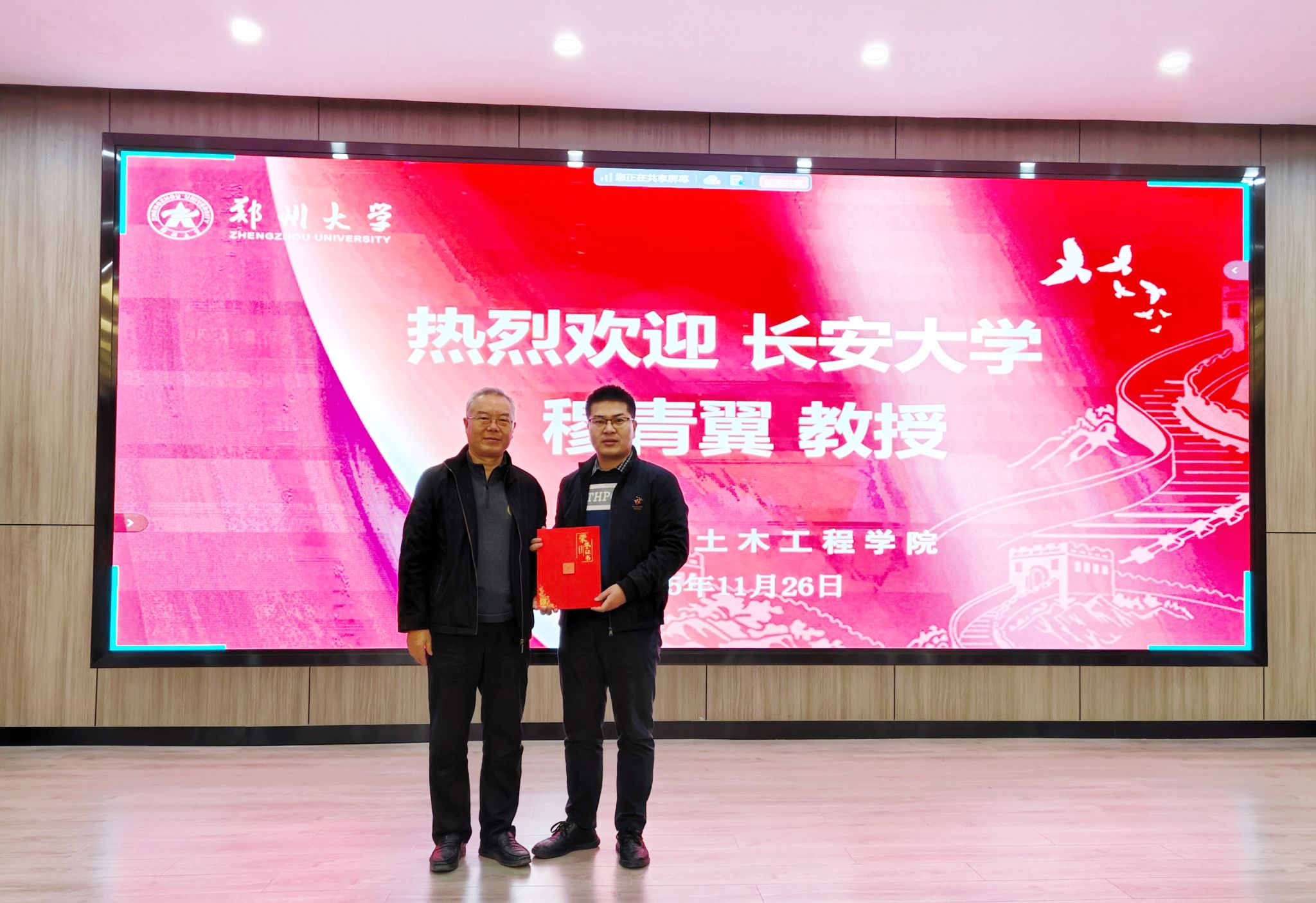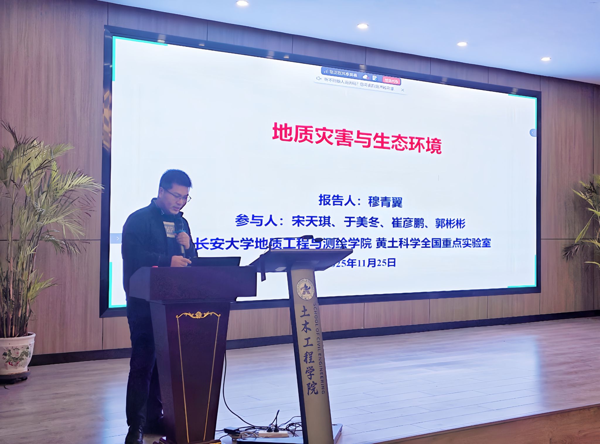 穆教授介绍了黄土湿陷的微观机理、理论预测模型及原位精准探测技术,并分析了秦岭不同岩性对植被群落、根系特征及生产力的控制机制。整个报告将机理研究、理论突破与工程实践紧密结合。郭院成教授为穆教授颁发了证书。
