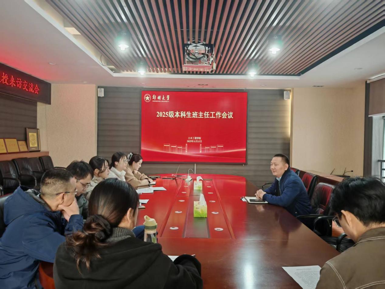 11月13日,郑州大学土木工程学院组织召开2025级本科生班主任工作会议,聚焦新生专业思想稳定与学业发展指导。学院党委副书记齐昱珲、2025级本科生辅导员及全体班主任参加会议。