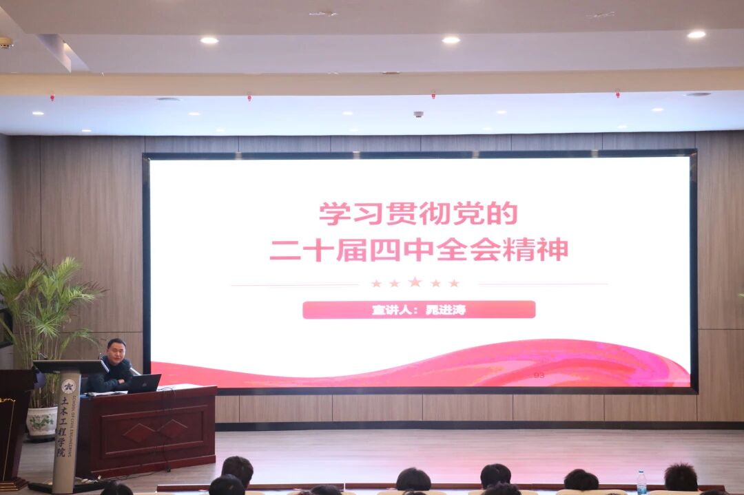 为深入学习贯彻党的二十届四中全会精神,引导团学骨干准确把握其核心要义与实践要求,12月18日,我院在学院四楼报告厅举行专题宣讲会。团委书记晁进涛面向全体团学骨干进行专题宣讲。