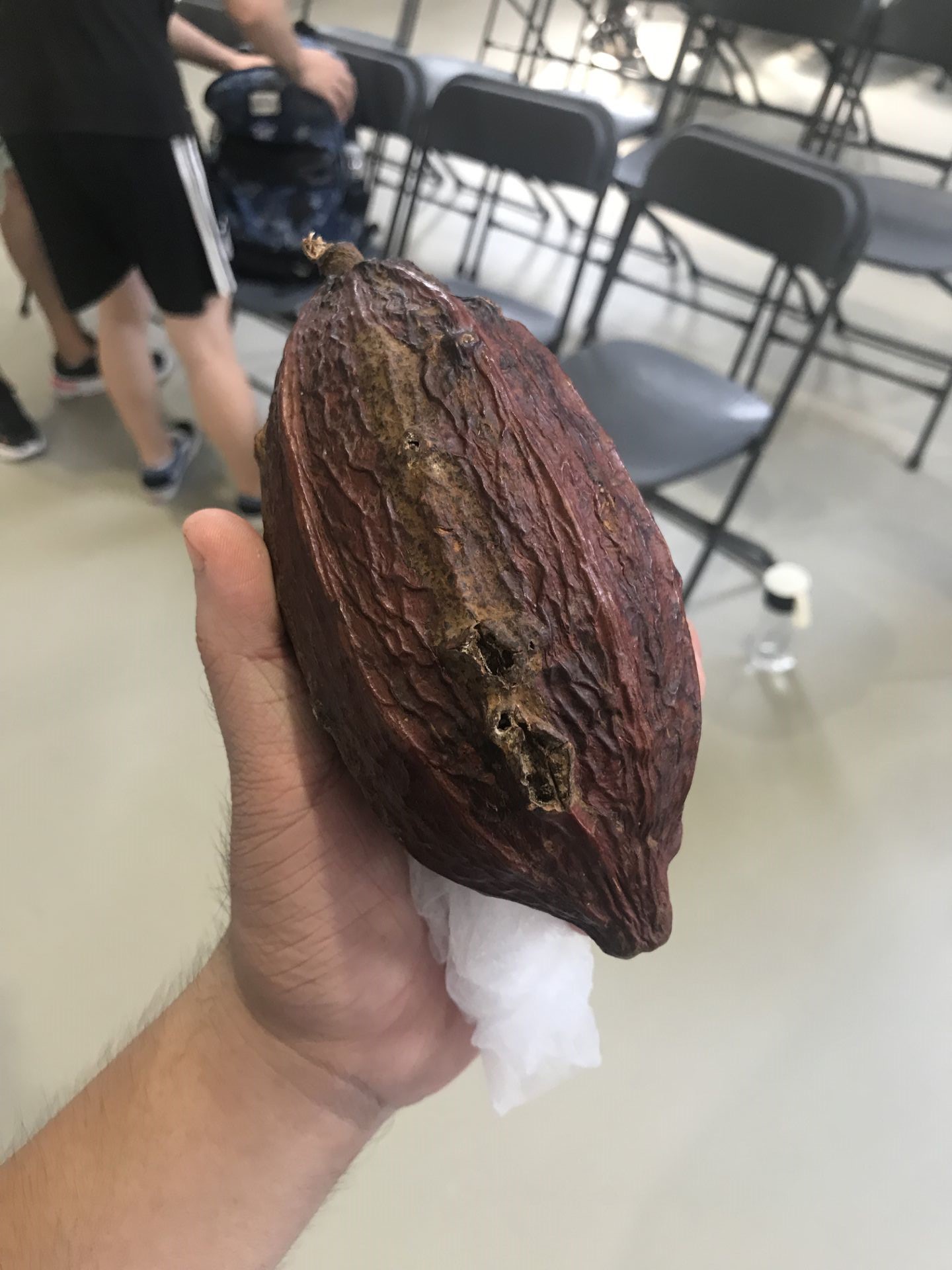 由于我们来的很早,大家就在门口享受了一次地地道道的欧洲阳光浴,布鲁塞尔当地时间13点的阳光,温暖明媚。到了约定的时间,我们进入了期待已久的巧克力工厂。一位胖高的白人大叔为我们科普介绍了巧克力的历史,制作过程和工艺,让我们对巧克力的认识从简简单单的“吃着好吃”,到不得不佩服人类的智慧,可以将毫不起眼的果子做成如此美味的食物。