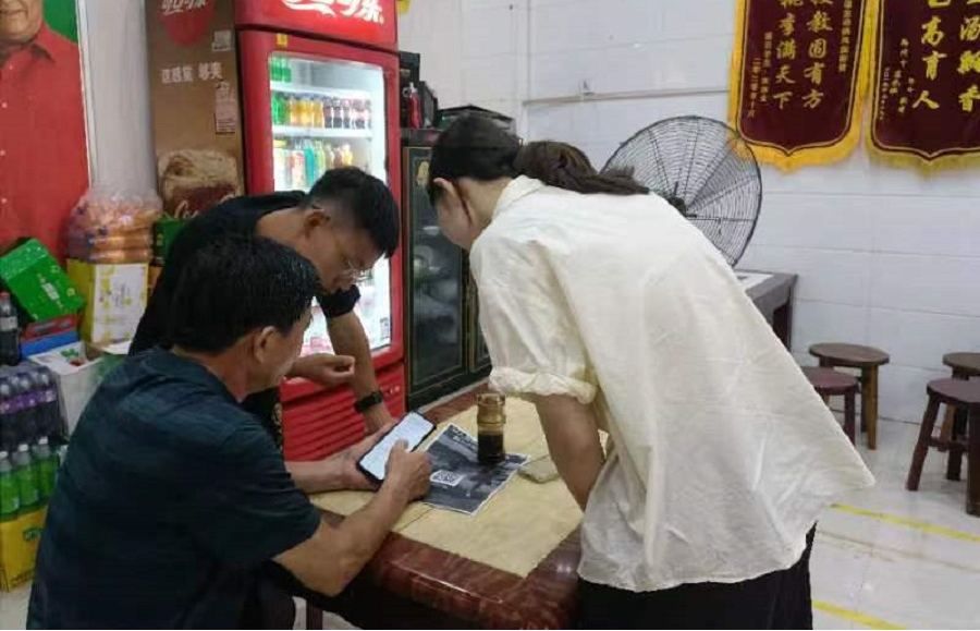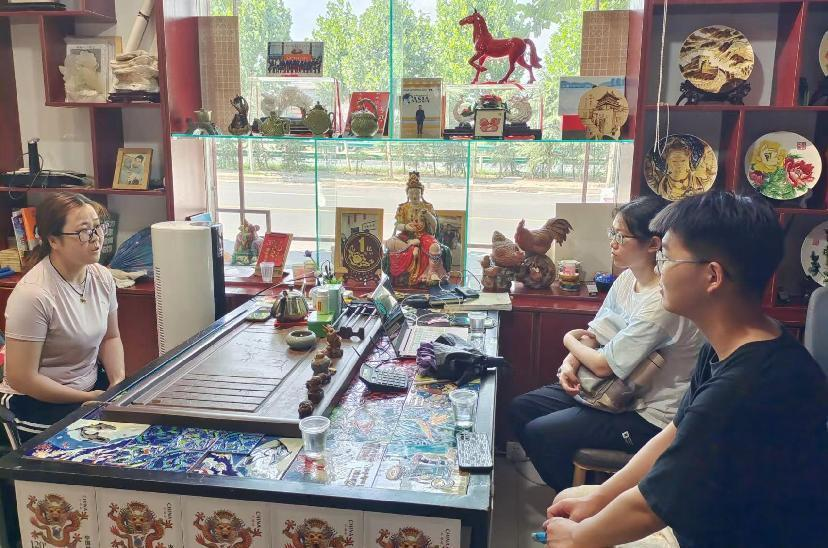 图为逍遥镇实践团成员就胡辣汤产业相关问题采访产业负责人。中国青年网通讯员 袁文茜 供图