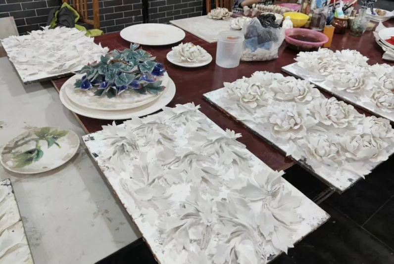 图为南石山村实践团成员前往工艺制作坊拍摄的即将上色的唐三彩工艺品。中国青年网通讯员 李珺 供图