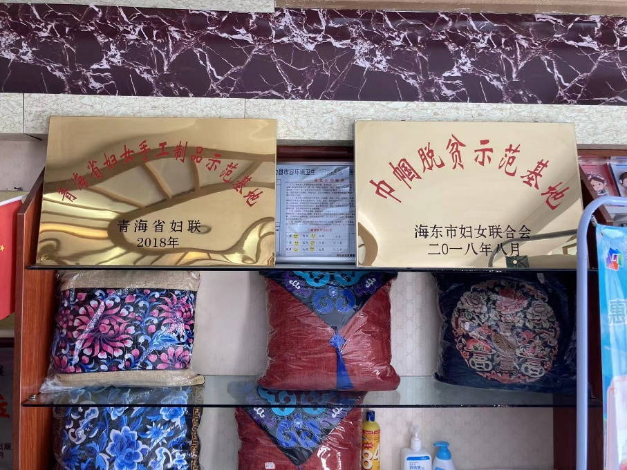 图为互助县金盘绣土族文化传播有限公司在产业脱贫中所获荣誉。中国青年网通讯员 魏子杰 供图