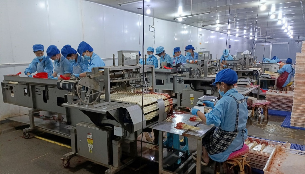 图为商丘柘城誉润食品厂女工正在进行生产工作。中国青年网通讯员 张佳璐 供图