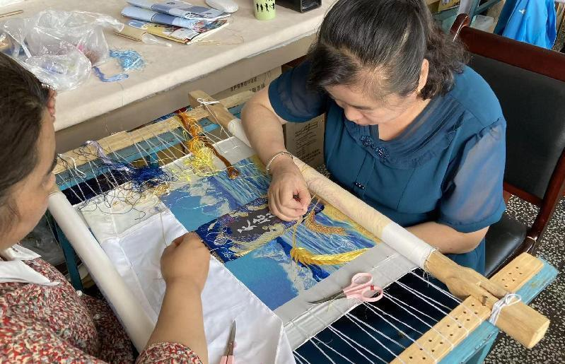 图为青海互助县盘绣制作基地的女工们正在生产盘绣工艺品。中国青年网通讯员 魏子杰 供图