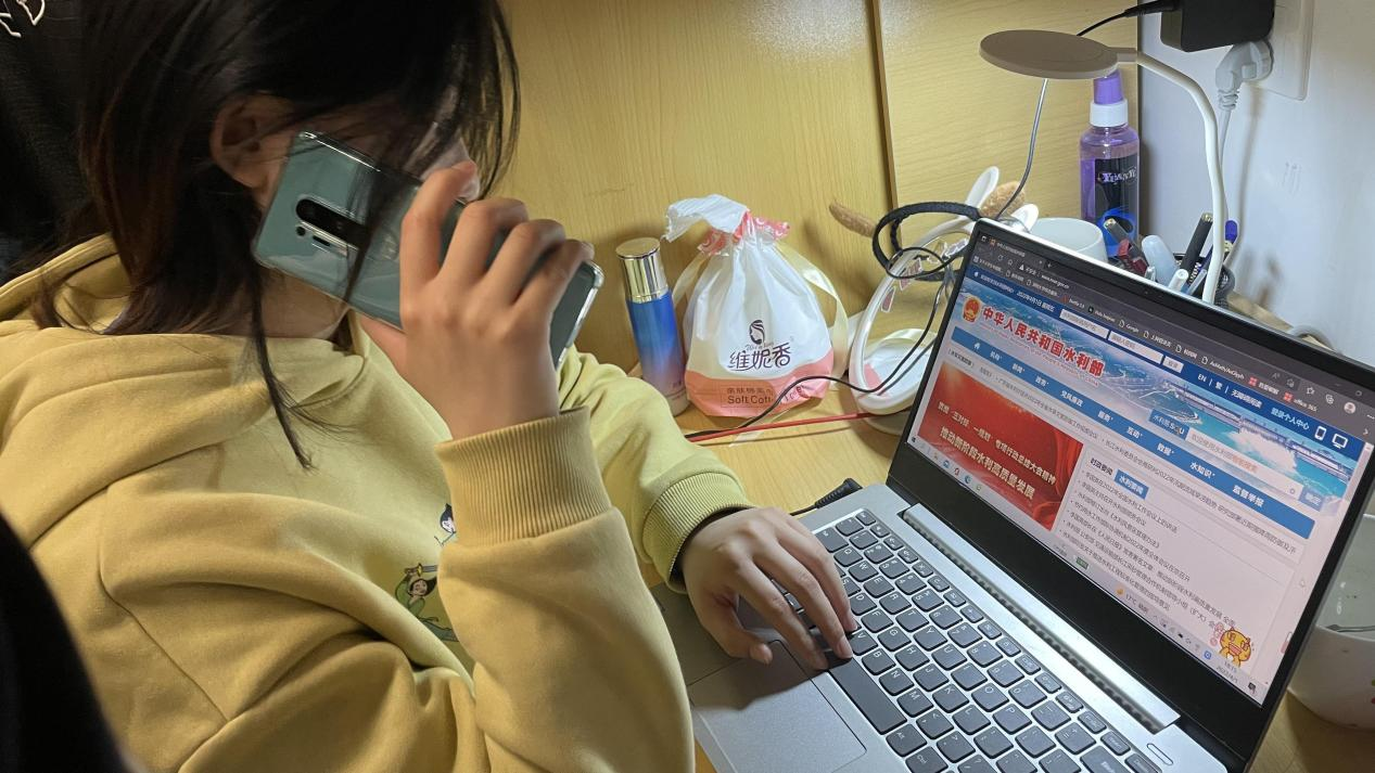 图为实践团队成员通过电话沟通的方法与有关部门询问相关水资源数据。中国青年网通讯员 刘晴 供图