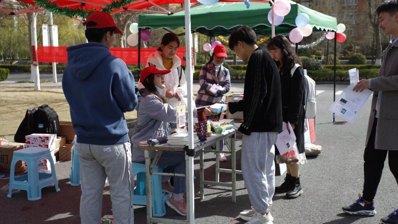 图为实践团队成员在校园内向同学们宣传节约用水的重要性。中国青年网通讯员 刘晴 供图